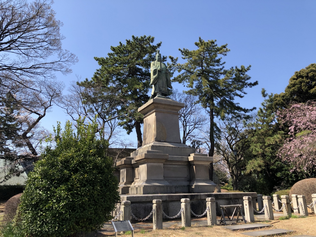 旧彦根藩士の有志がこの地一帯を買い取り、横浜開港50年を記念して、横浜開港への井伊掃部頭直弼の功績をたたえて、井伊直弼増を建立しました。最初の銅像は、戦争での金属回収で撤去されてしまったため、現在のものは昭和29年に建てられたものです。