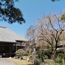 本堂前にあるしだれ桜が気になって、3月下旬から7~8回様子を見に行きました。遅咲きということで粘りましたがパラと咲いた程度でほとんど咲かず…。桜の種類は「紅八重しだれ」。老木のためでしょうか。その証拠に乙川堤防沿いの若木はそこそこ咲いていました。きっときれいだろうなと期待していた分、残念な結果に終わってしまいました。