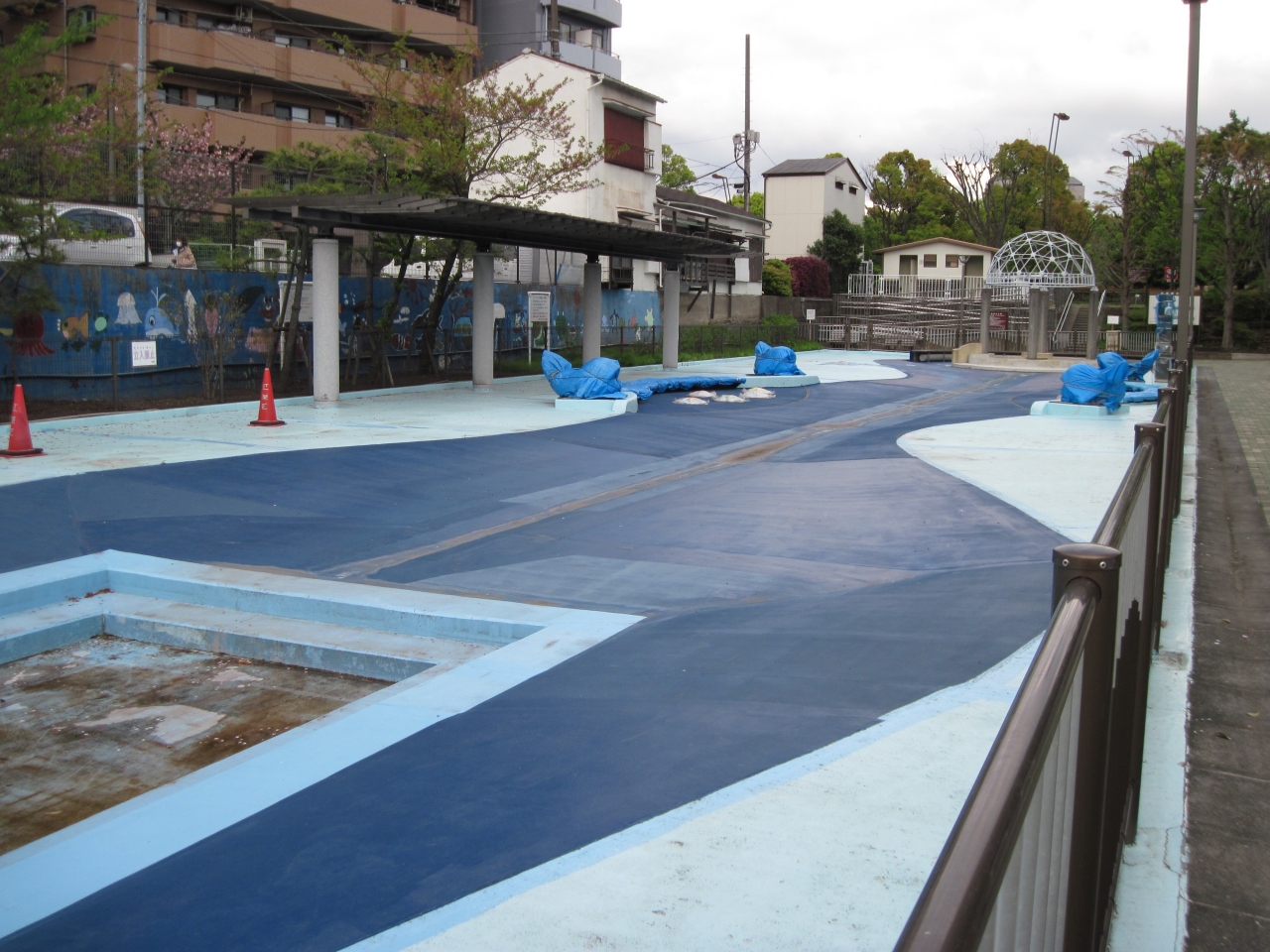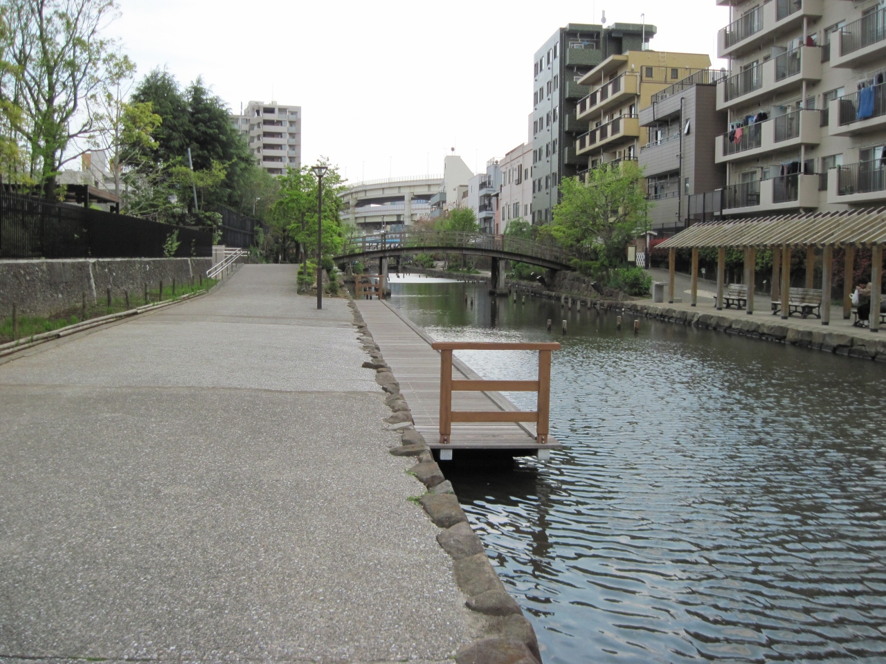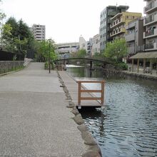 名前の通り水に親しむ公園なので、子供たちがじゃぶじゃぶ水遊びができるような、浅いプールもありました。今はまだ寒いので、水の流れもなく静かでした。他には運河沿いに遊歩道が整備されていて、水際を散策することができました。