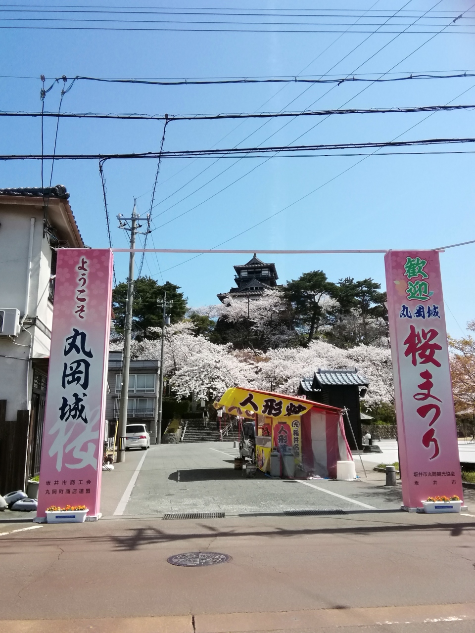 現存天守12城のひとつであり日本100名城にも選ばれている丸岡城に行ってきました。平山城と言いながら少し小高い坂を上ります。訪れた時はちょうどさくらまつりを開催していて桜が満開で見事でした。急な階段を上り天守閣に入ると更に急な梯子階段で最上階まで上がります。最上階からの景色は最高でした。