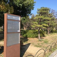 大阪城の二の丸、内堀のそばにあります。「南無阿弥陀仏」と書かれた石碑が立っていて、横にある小さな小屋の中を見下ろすとある巨大な松の根を指します。周囲の松が立派にそびえていて、わかりづらい場所にあります。蓮如上人とは本願寺蓮如のことで、大阪城を築城前の1496年、石山御坊(のちの石山本願寺)を建立しました。大阪城公園内に石山本願寺があったと考えられていますが、それを示す遺構は発見されていません。大阪城の南側、大阪市立修道館のそばに石山本願寺推定地の石碑があります。