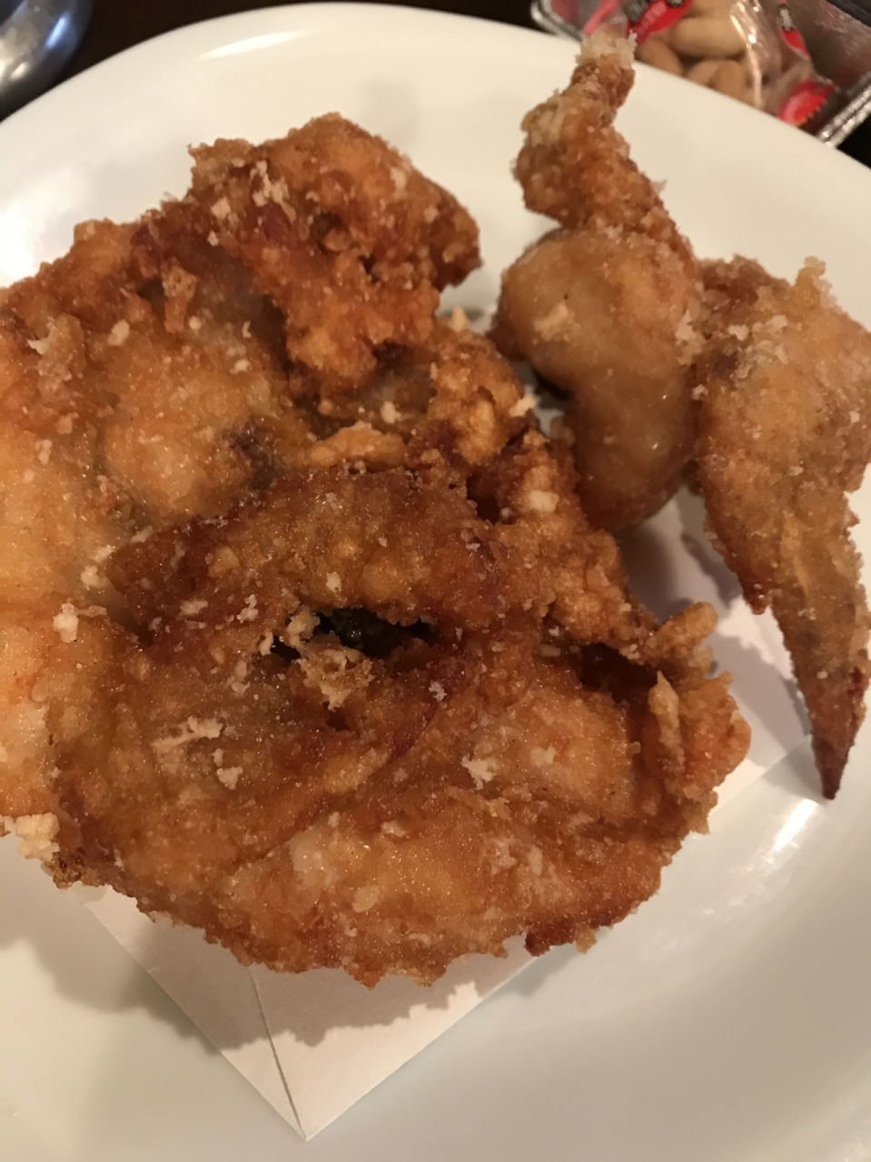 お店の売りのから揚げは、骨付きの大きな肉で食べ応え十分。