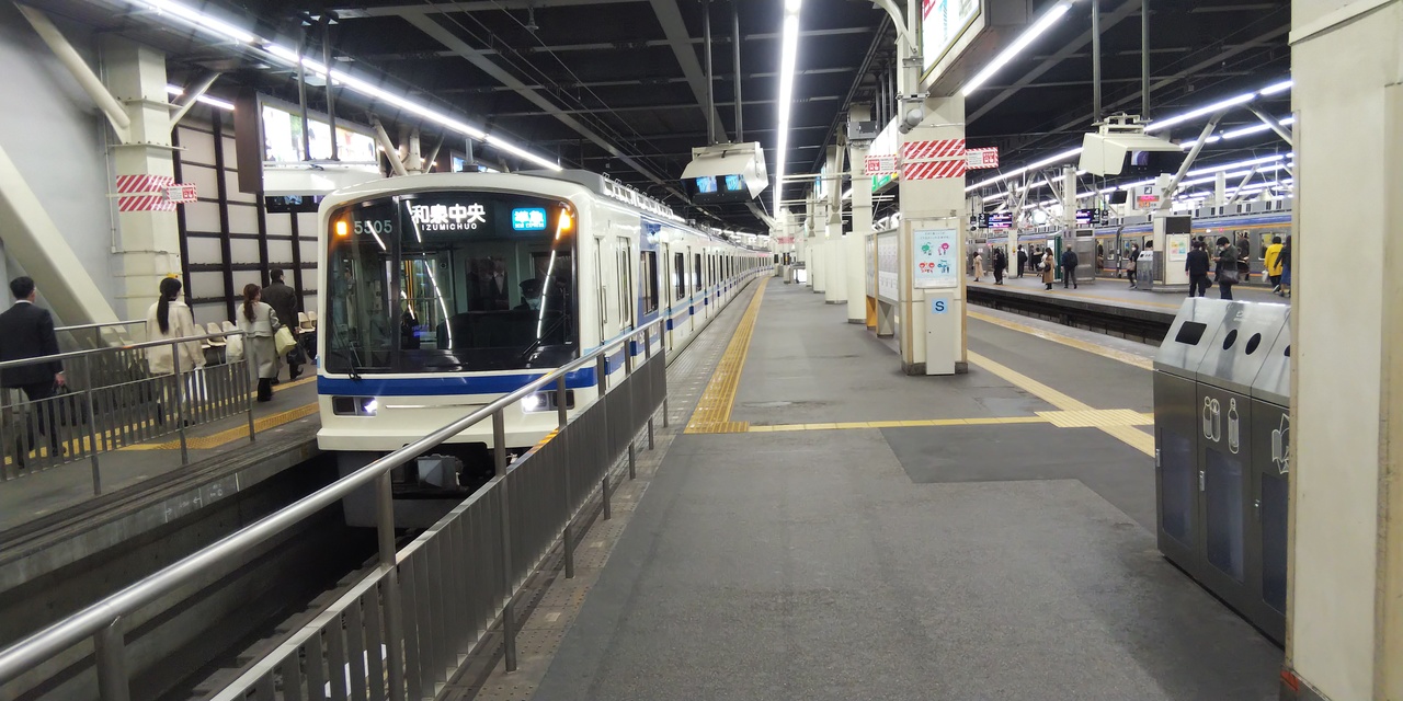 泉北高速鉄道はなんばから和泉中央までを結ぶ鉄道路線です。今回は平日19時45分発の準急行、和泉中央行きに乗車しました。通勤時間に少しずれたお陰であまり混雑しておらず、座ることができました。なんばから堺東まで乗車しました。