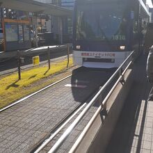 この日は低床式電車が使用され、混雑には至らなかったものの全てのシートが埋まり、10名程度の立ち客がある等決して空いているとはいえない状態でした。
