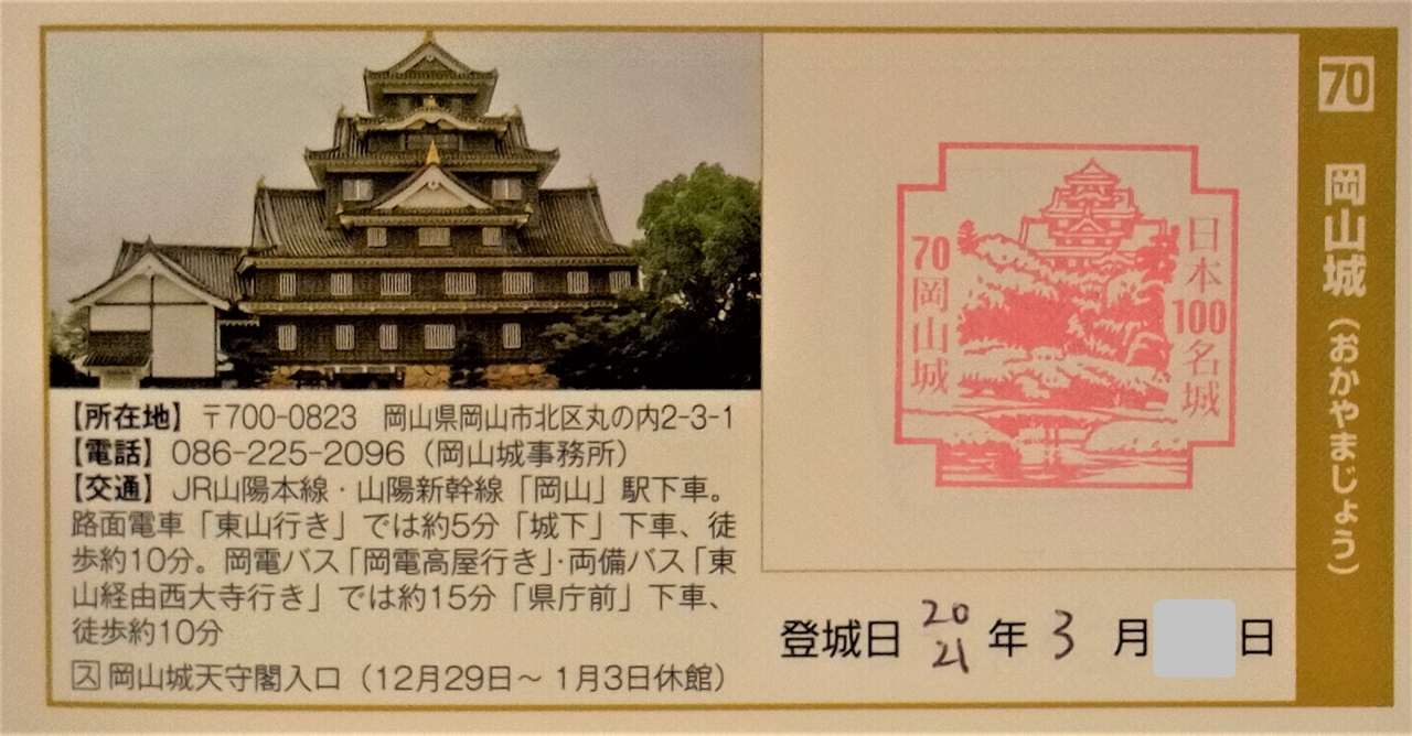 新型コロナウイルスの影響でマスクが欠かせない中、三密を避け日本100名城のひとつである「岡山城」を訪問しました。どっし形をした黒漆塗りの壁に金が映えて重みを感じますね。戦国時代のお城は黒色?との逸話もあり大坂城もそうだったとか?いう説もあるようですよ。見どころは天守閣はもちろん廊下門と繋がる月見櫓や不明門(あけず門)そして守りを固めている石垣も素晴らしいですよ。そして欠かせないのがお隣にある日本三大庭園の後楽園からの眺めです。是非欲張って訪問くださいね。