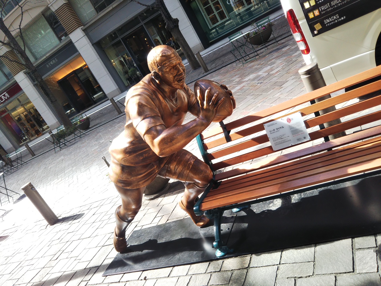 所々に アート作品が飾られています。この辺りはラグビーワールドカップで盛り上がった場所でもあり、リーチマイケルさんの像もございました。一緒に記念撮影必須です。