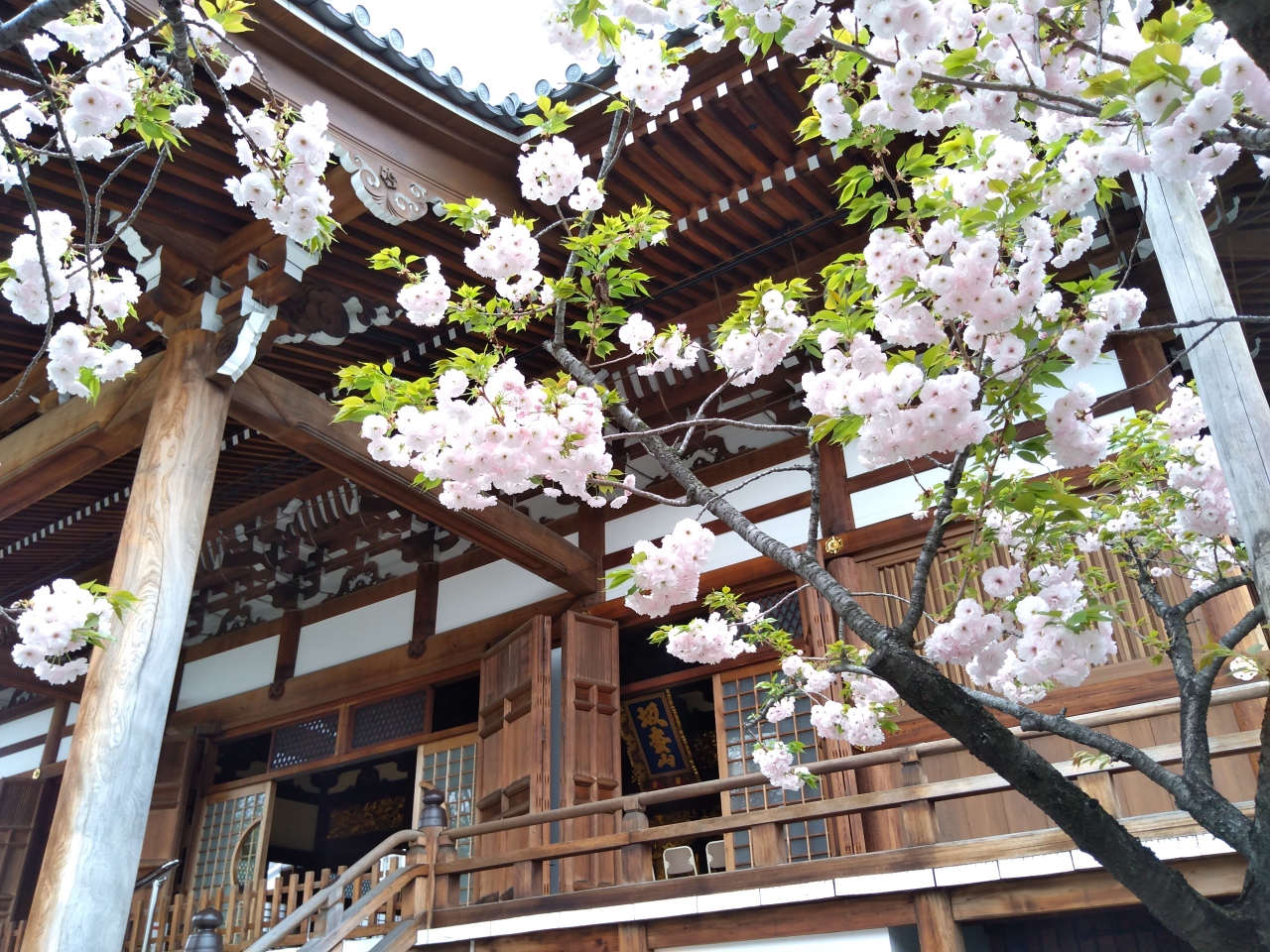 主に納骨で有名なお寺だからでしょうか、木々はそれほどなく、桜の木も山門を入ったところに立派な木があるくらいでした。本堂とそばにある桜を写真に撮りました。週末は納骨される方々やお参りの方々でけっこう混雑します。