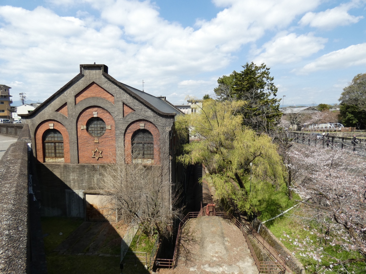 京都の東端の蹴上から仁王通り沿いに建つ赤煉瓦造りの重厚な建物が第二期蹴上発電所。今は発電所としては使用されていませんが当時の活躍していた面影が漂います。横を動力を供給したインクラインが走り桜見物の観光客が大勢歩いています。京都の発展に貢献した発電所です。