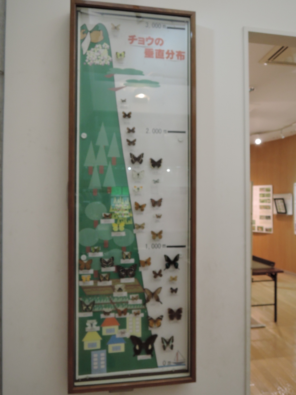 道の駅でトイレ休憩しようと思い、駐車場に入ると、、、。何と、博物館のような施設が。塩尻市立自然博物館と書かれている。時間的にも余裕があったので、入館。入口横には妖怪あまびえの像が。館内は、高ボッチ高原などの動物・植物の紹介展示となっている。特に、蝶の標本が多く展示されている。キジ・鹿のはく製展示は今にも動き出しそう。地下では、翌日からの特別企画展(野鳥の切り絵)の準備が進んでいた。