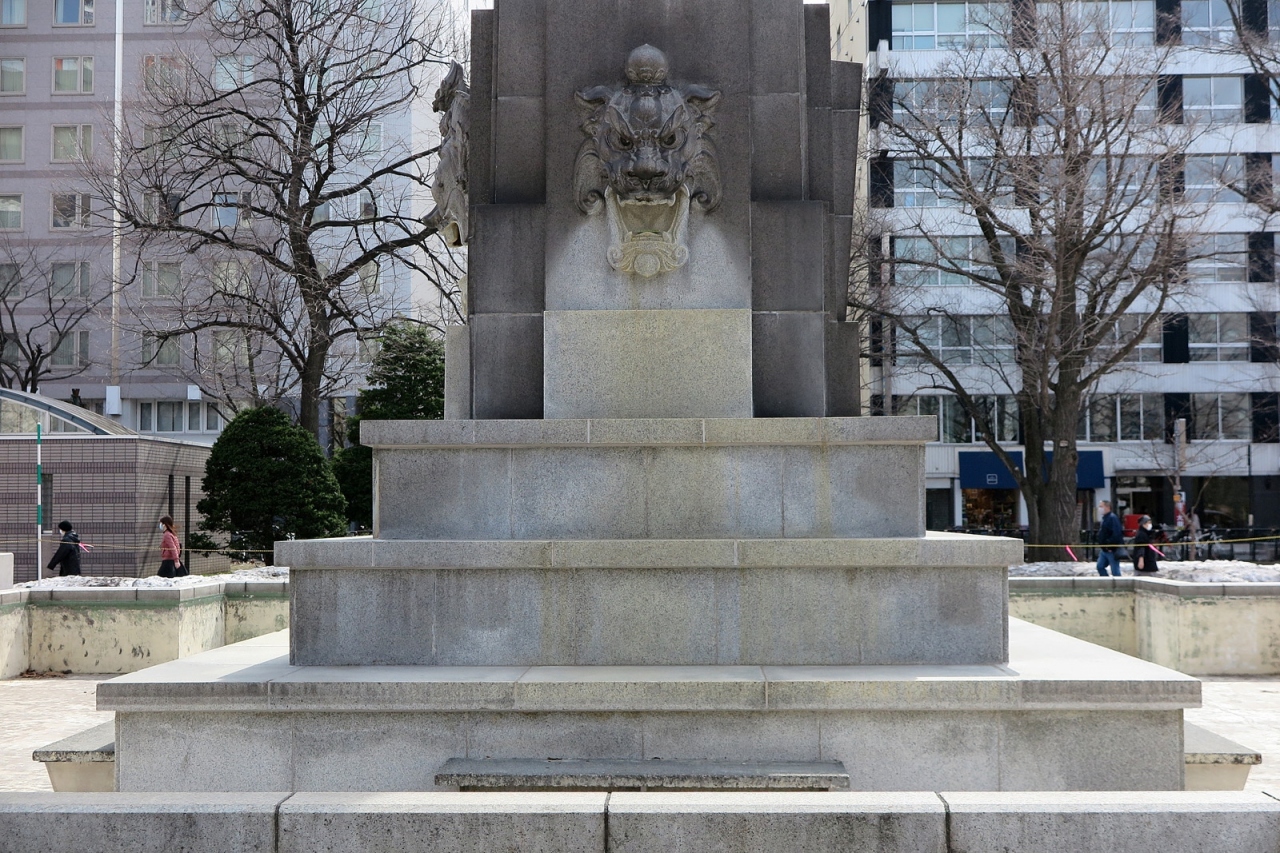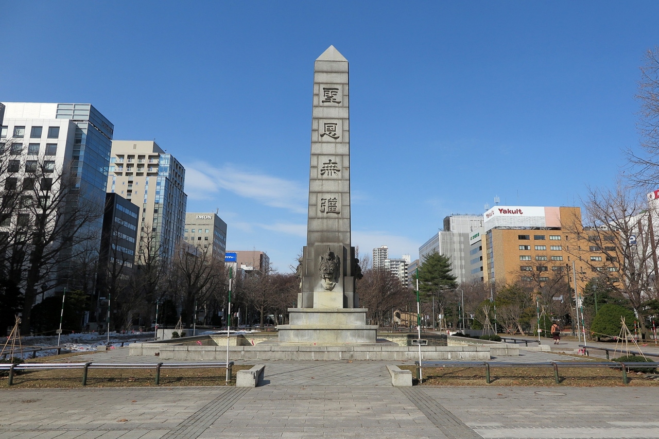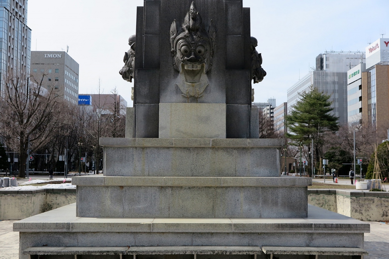 今まで何度も札幌を訪れていながらも、「大通公園」をゆっくり散策したことがありませんでした。今回「大通公園」を見て回ってみましたが、その中でもひと際大きなモニュメントが、こちらの碑でした。ただ、これだけ立派な碑でありながら、「何の説明文も見当たらない理由は?」と思わされました。ちょっと調べてみたら、昭和天皇行幸記念に建てられたもののようでした。好き・嫌いという指向とは別に、日本の一時代を表すモニュメントでありながら、左翼側からの批判を恐れているのかな?ちょっと残念な気がしました。