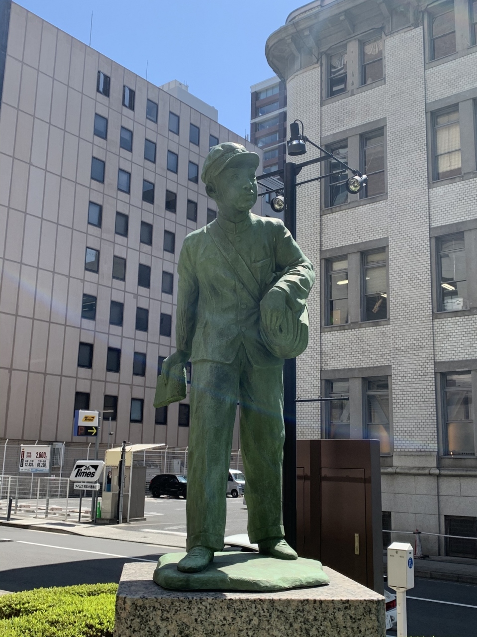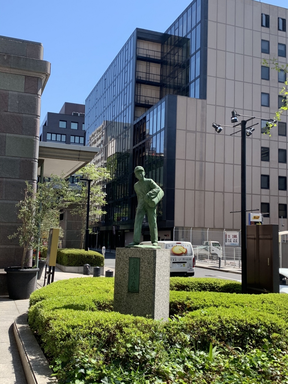 横浜情報文化センター前の植え込みの中に建つ像です。