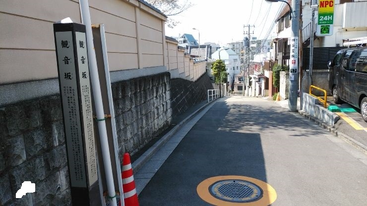 四ツ谷駅から徒歩10分くらいのところにある坂道。西念寺と真成院の間を南に下る。