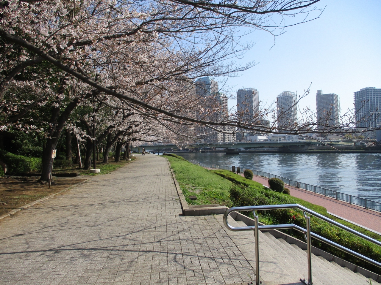 どこからどこまで続いているのかよくわかりませんが、築地のあたりの隅田川テラスを見ました。整備された川沿いの遊歩道です。散歩やジョギングなどによさそうです。場所によっていろんなものが見られるのかなと思いました。