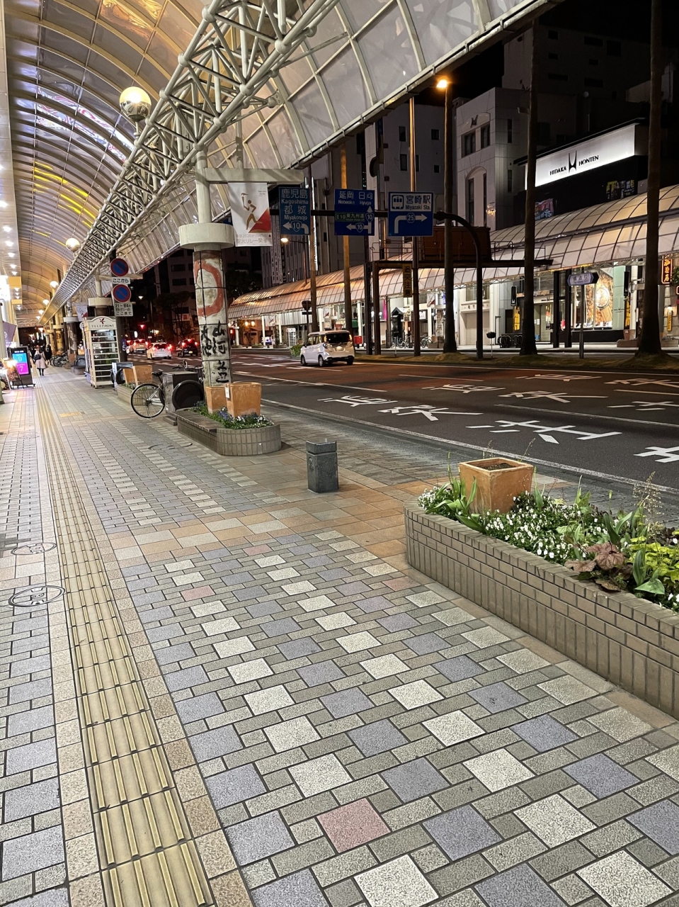 観光地にあるお土産屋さんがたくさんあったメインストリート、今は飲食店街になっています。飲食店街もコロナでどこも空いています。地方の厳しさを感じる一面です。近隣にはホテルもたくさんあるので宮崎に来たら周辺に泊まる方が便利です。