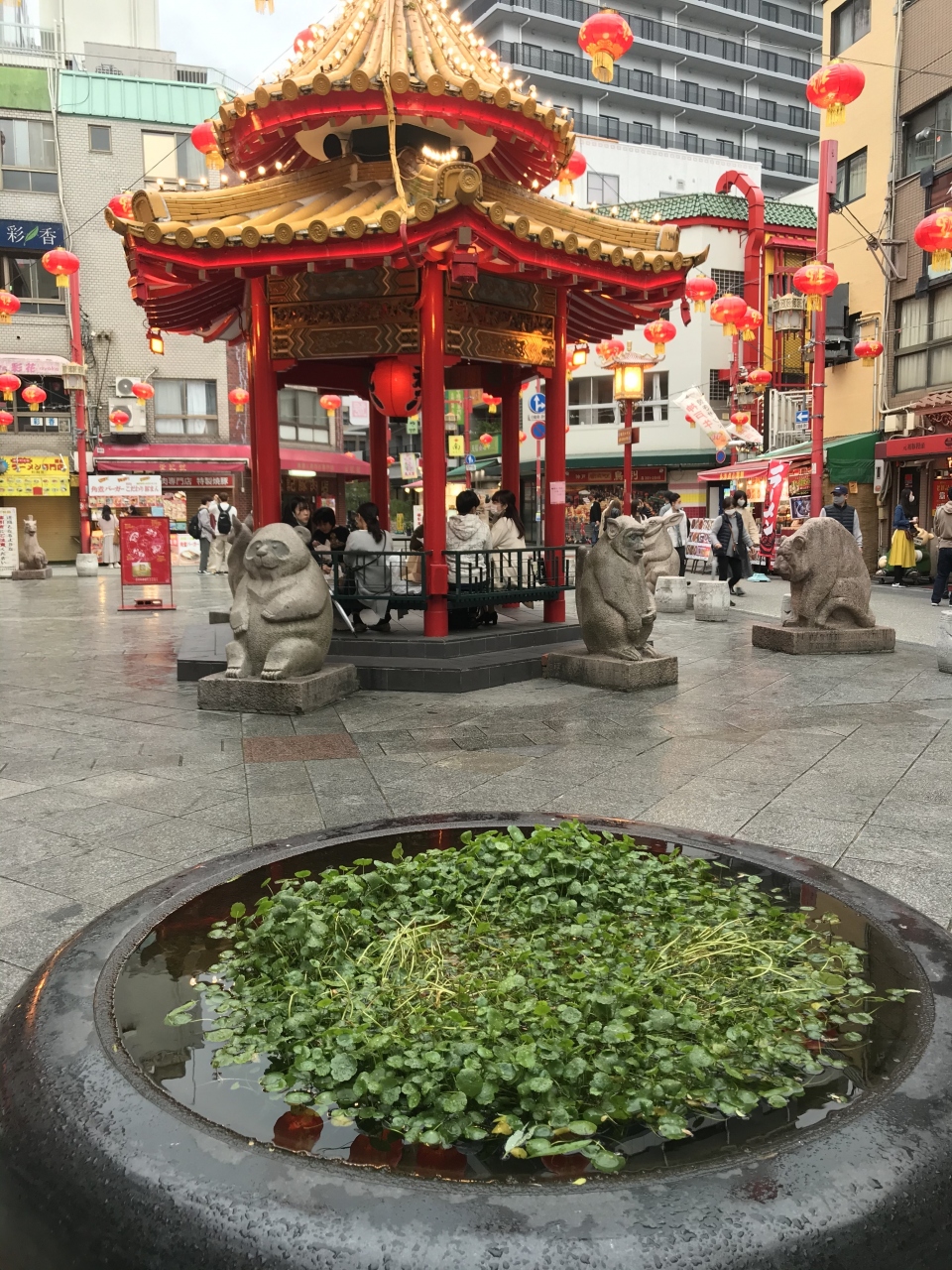 ここから東西南北に南京北路、南路、東路、西路沿いに中華料理店や商店が広がる