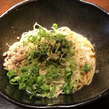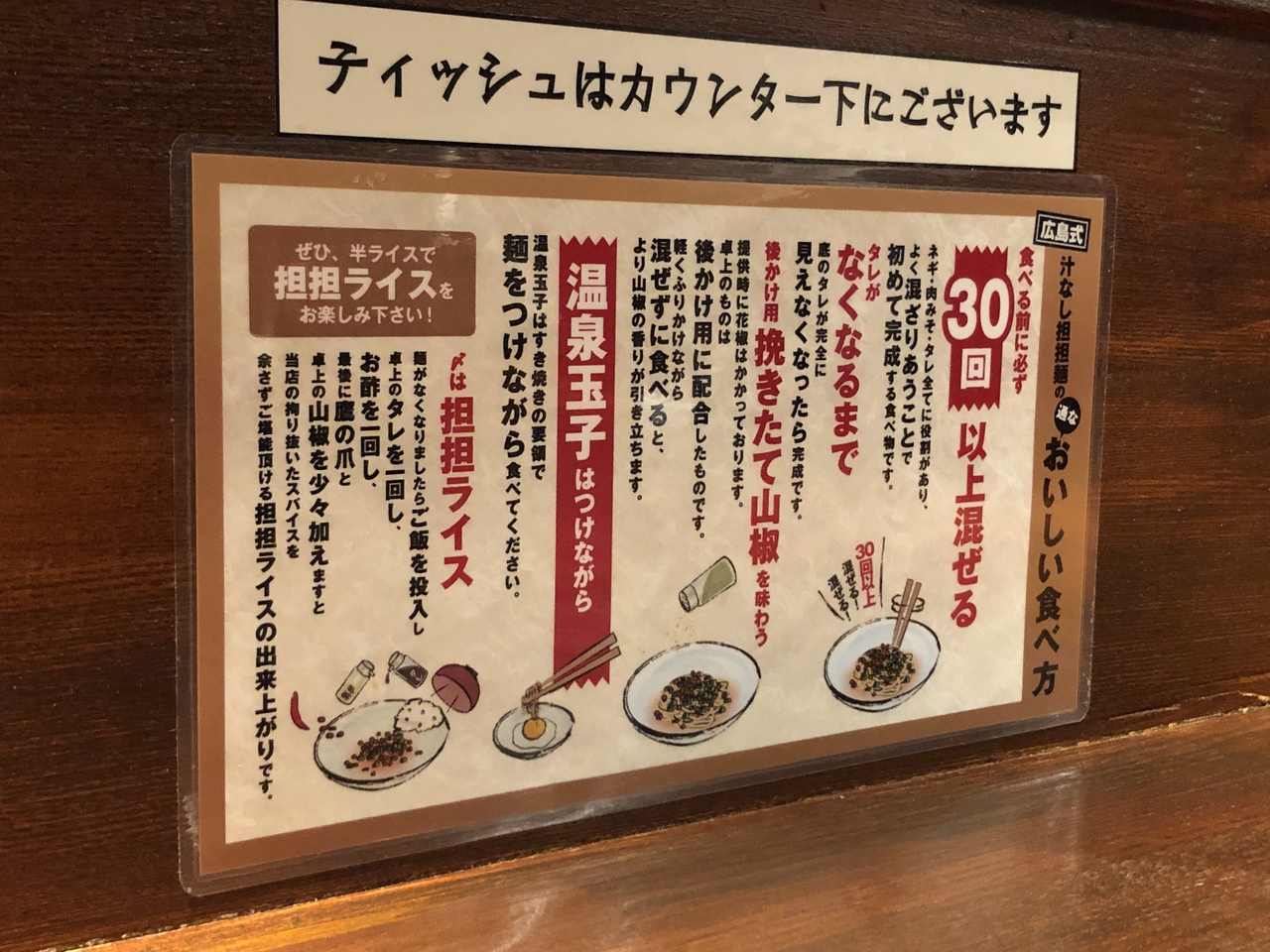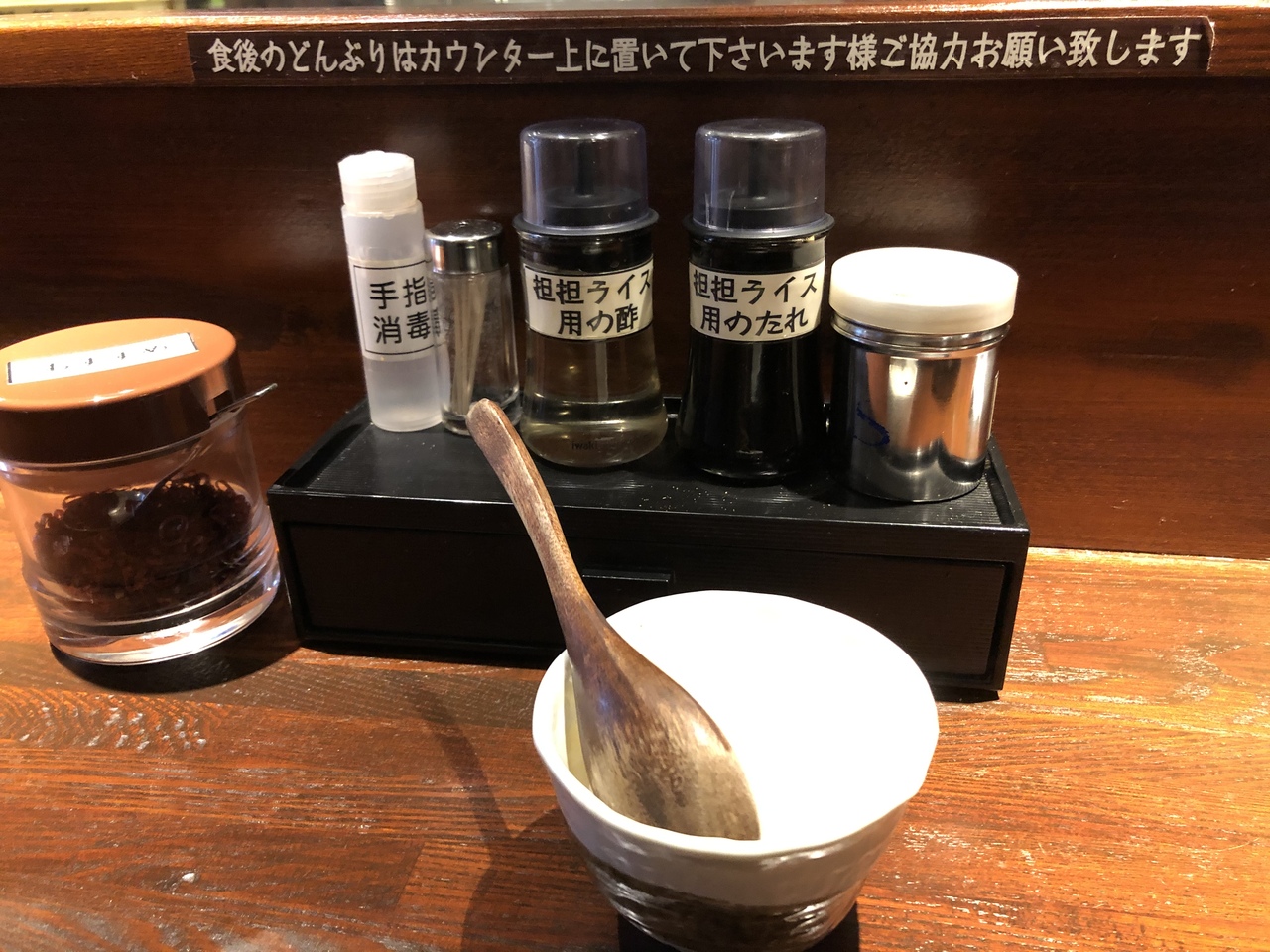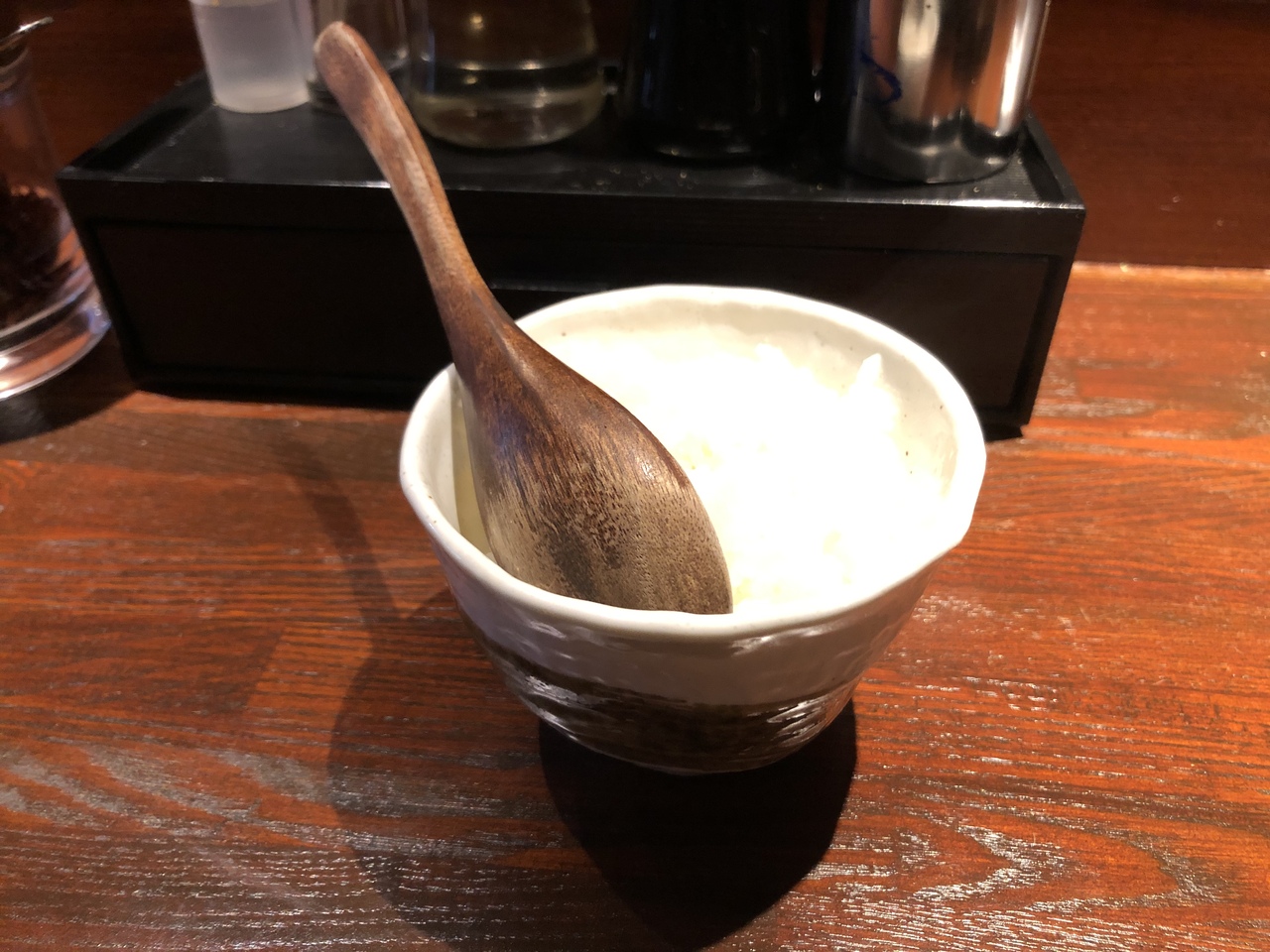 初心者には2辛がオススメとのことでしたが、山椒の痺れに自信がなくて、ノーマルな1辛(マイルド)をオーダー。運ばれてきた坦々麺は、30回以上混ぜろ、との指示。ツルツルしこしこの縮れ麺は、タレとよく絡む。普通のラーメンと同じく麺をすすると、山椒が口の中で暴れて舌が麻痺する感覚がたまらない。挽きたての中華山椒を使用しており、香りがめちゃくちゃ良い。半熟卵やセロリのトッピングがオススメとのことだか、個人的にはそのままが美味だと思う。麺を食べ終わったら、半ライスを投入し、タレと酢、鷹の爪と山椒を少々。坦々麺ライスにするのもなかなか。麺とは違う味。これも美味。