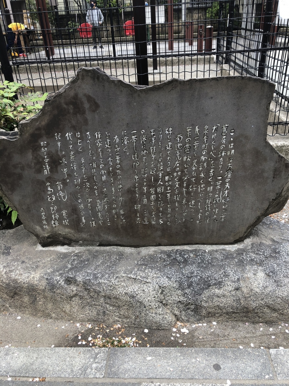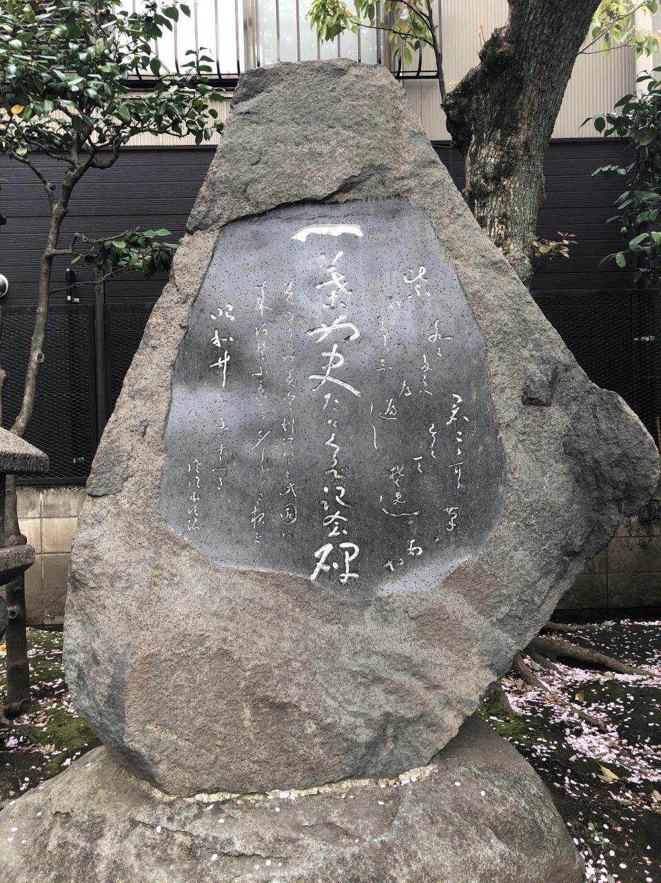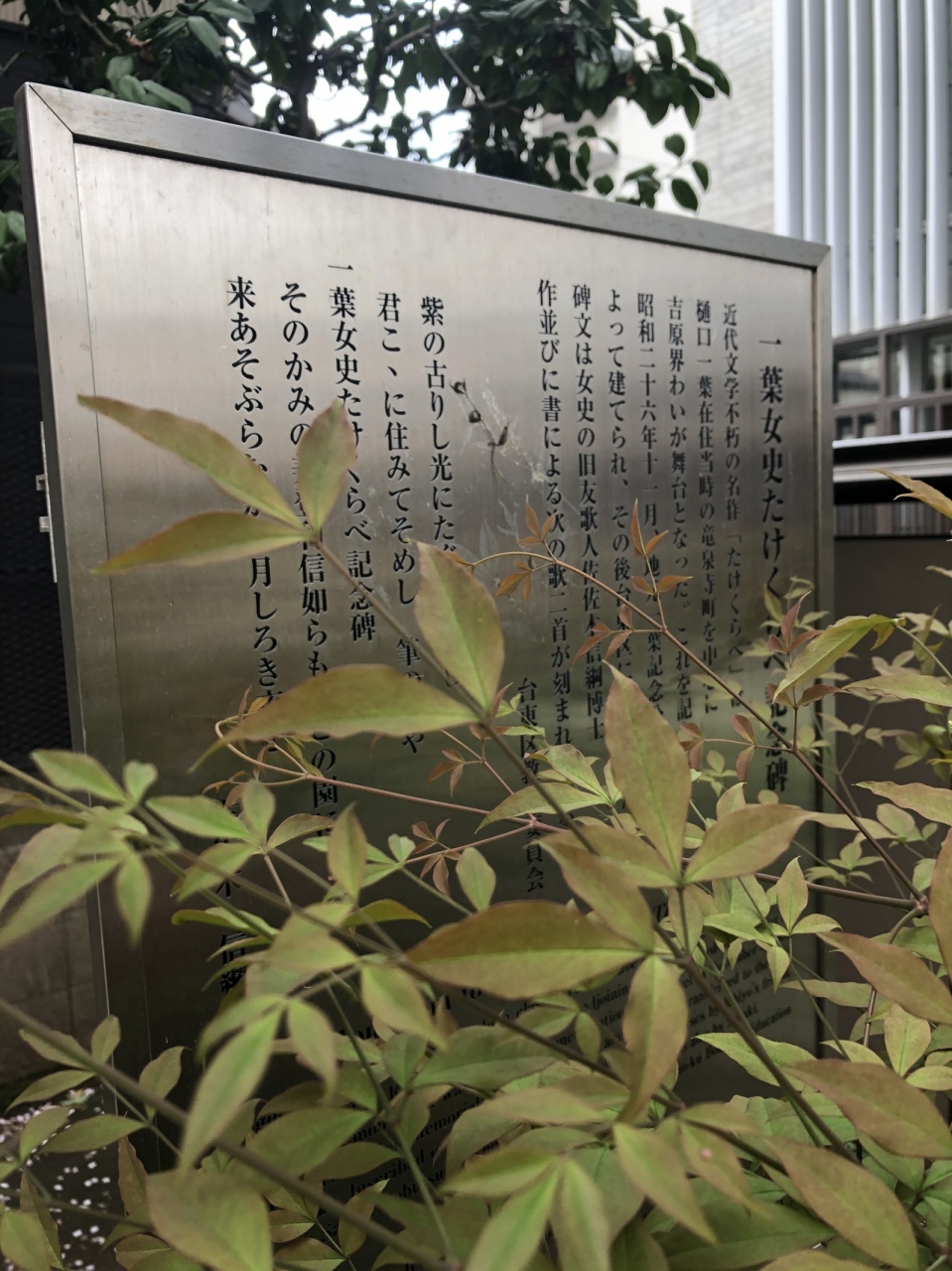 そこには樋口一葉居住跡という石碑、たけくらべの説明板がありました。