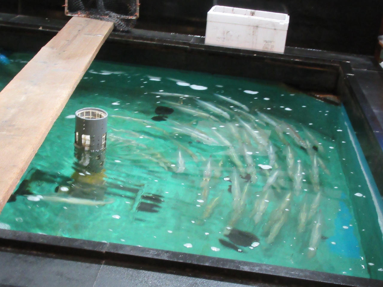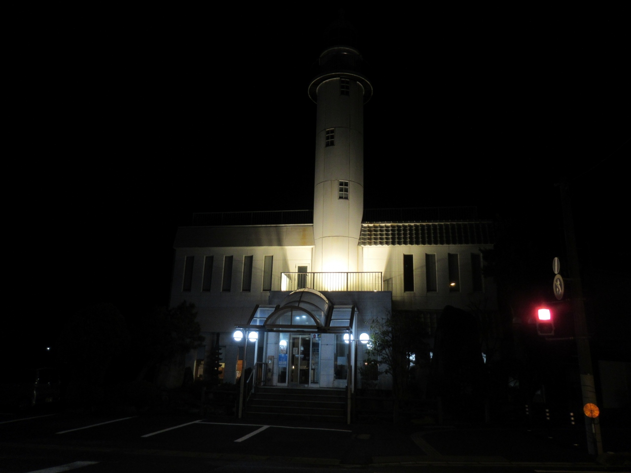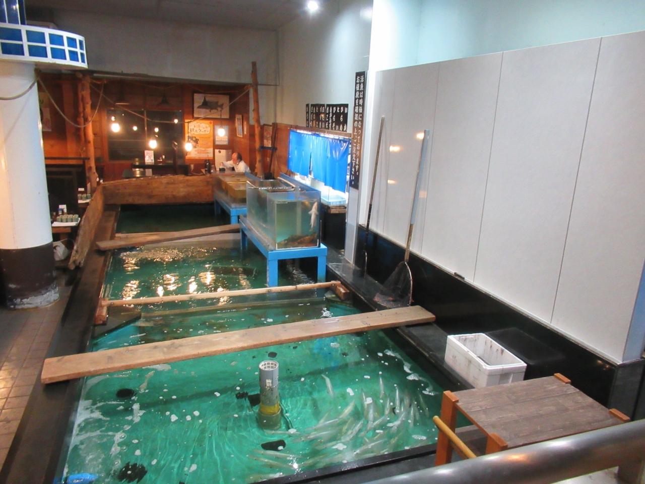 灯台の形をした建物で、夜はとても目立っていました。店内の中央に大きな生簀があり、生簀の前にカウンター席、壁際は掘り炬燵席がたくさんあって、広々としてました。