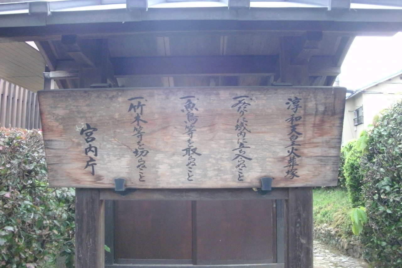 向日市内史跡巡りで訪れました。桓武天皇の第三皇子である淳和天皇を火葬した場所とされているところです。まわりを住宅に囲まれ、空堀をめぐらせた方墳の真ん中あたりは小さな森のようになっています。宮内庁の管理に下になっていて内部に入ることは出来ず外から眺めるだけになります。