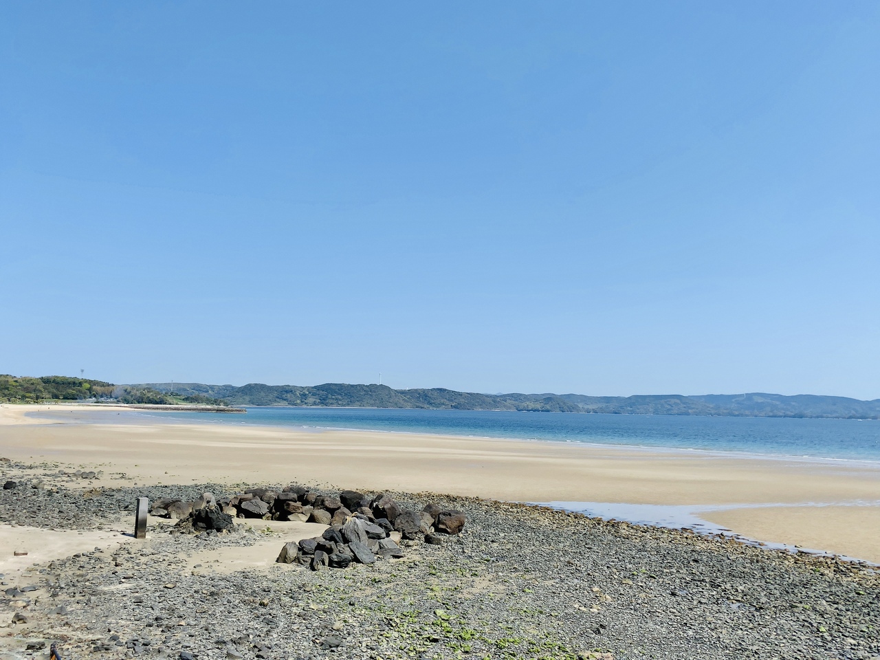 千里ヶ浜は平戸大橋を渡って車で10分以内にある平戸島の東側にある海水浴場です。この浜は東アジアの英雄とされる鄭成功の生まれた場所で千里ヶ浜の一角には鄭成功児誕石があります。また近くに乗馬クラブがありこの浜を潮風を感じながら乗馬できます。