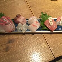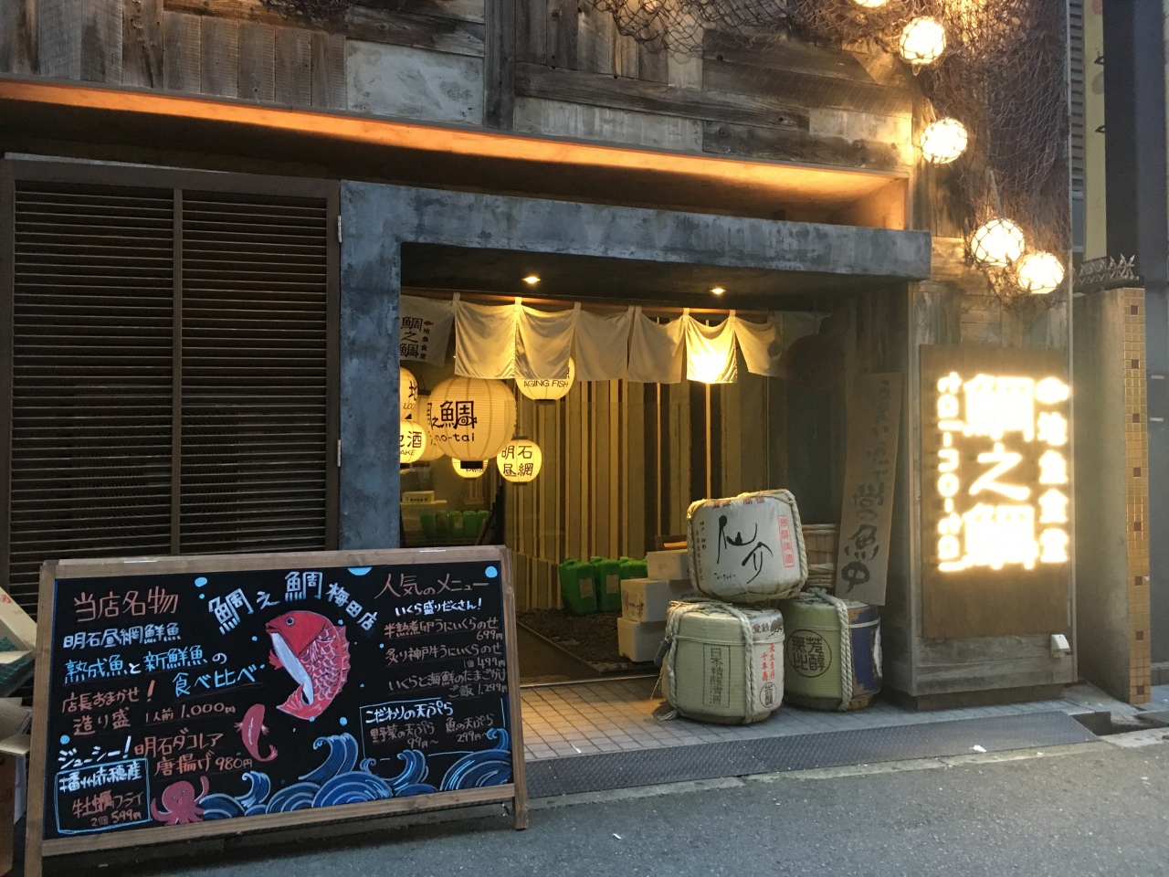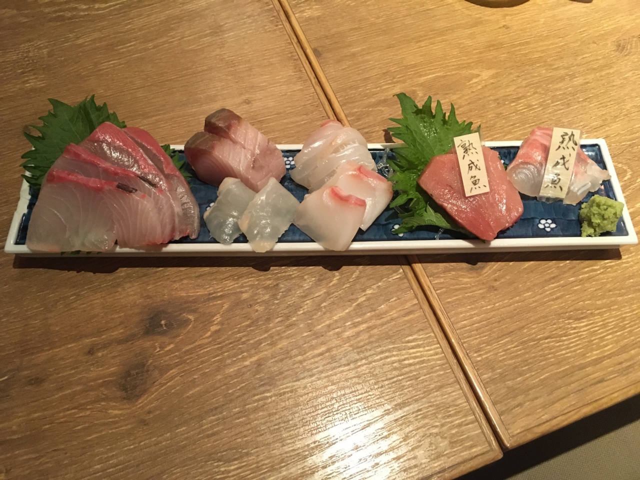 JR大阪駅や梅田駅から地下街にある泉の広場を上がり、数分ほど歩くとお店があります。熟成魚が看板メニューの海鮮料理を中心としたメニューが楽しめる居酒屋さんです。ビルの地下1階に入口があり、カウンターとテーブル席、奥には扉が付いた別の部屋がありました。熟成魚が含まれたお刺身盛り合わせとほっけ、フライ、お茶漬けなどを注文しました。熟成魚と普通の鮮魚との違いは正直わかりませんでしたが、お刺身の種類も多くて美味しかったです。接客も丁寧で雰囲気も良かったです。