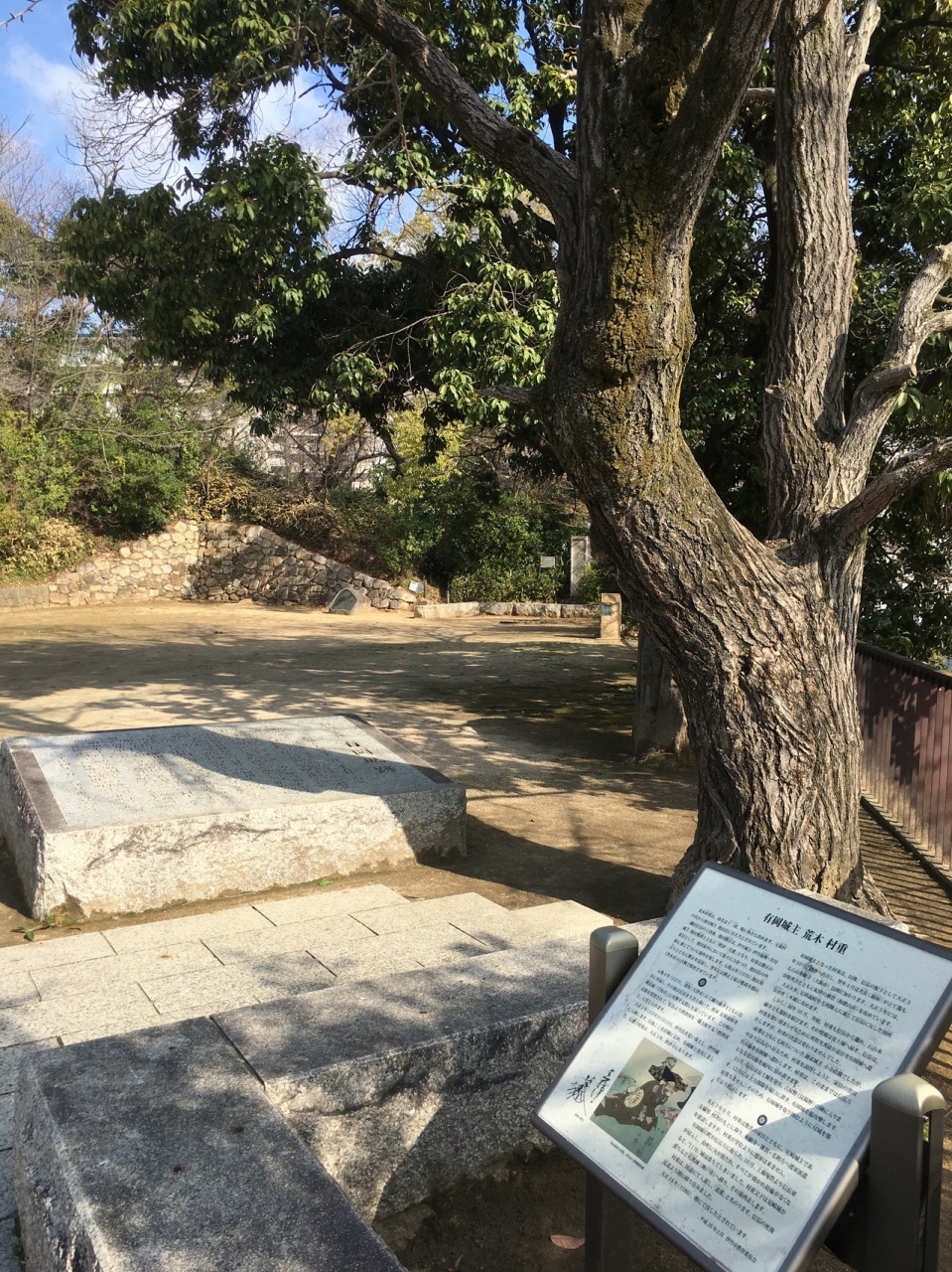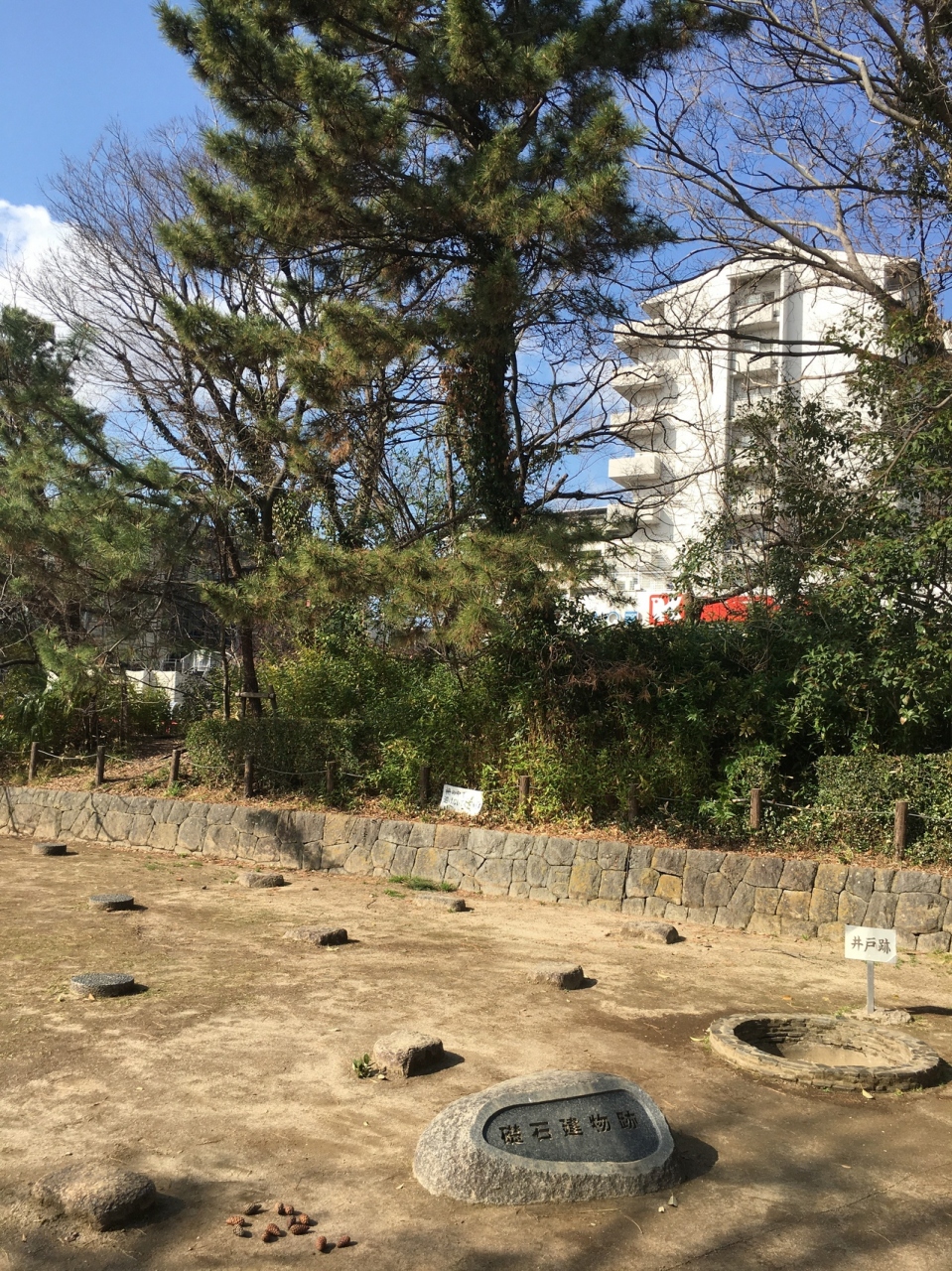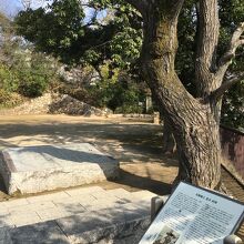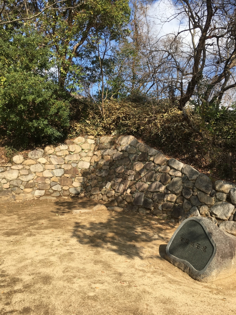 天守閣はなかったですが石垣、礎石建造物、井戸跡等が残っていました。空間部分の出入口には城主荒木村重のことを記載した説明看板がありました。JR伊丹駅降りて目の前にあるためか、ベンチもあり、城の紹介看板もあります。