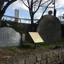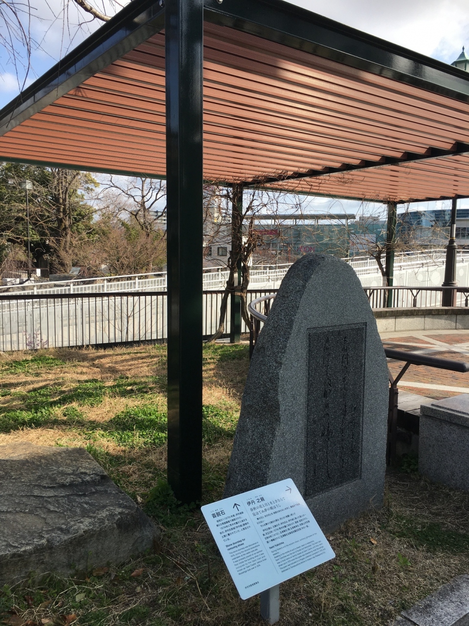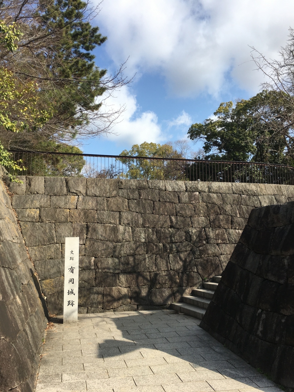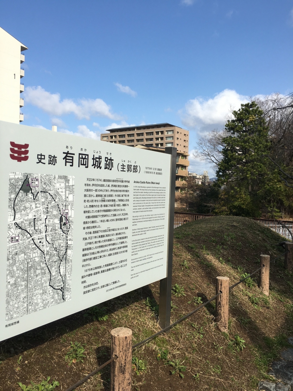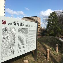 天守閣はなかったですが石垣、礎石建造物、井戸跡等が残っていました。空間部分の出入口には城主荒木村重のことを記載した説明看板がありました。JR伊丹駅降りて目の前にあるためか、ベンチもあり、城の紹介看板もあります。