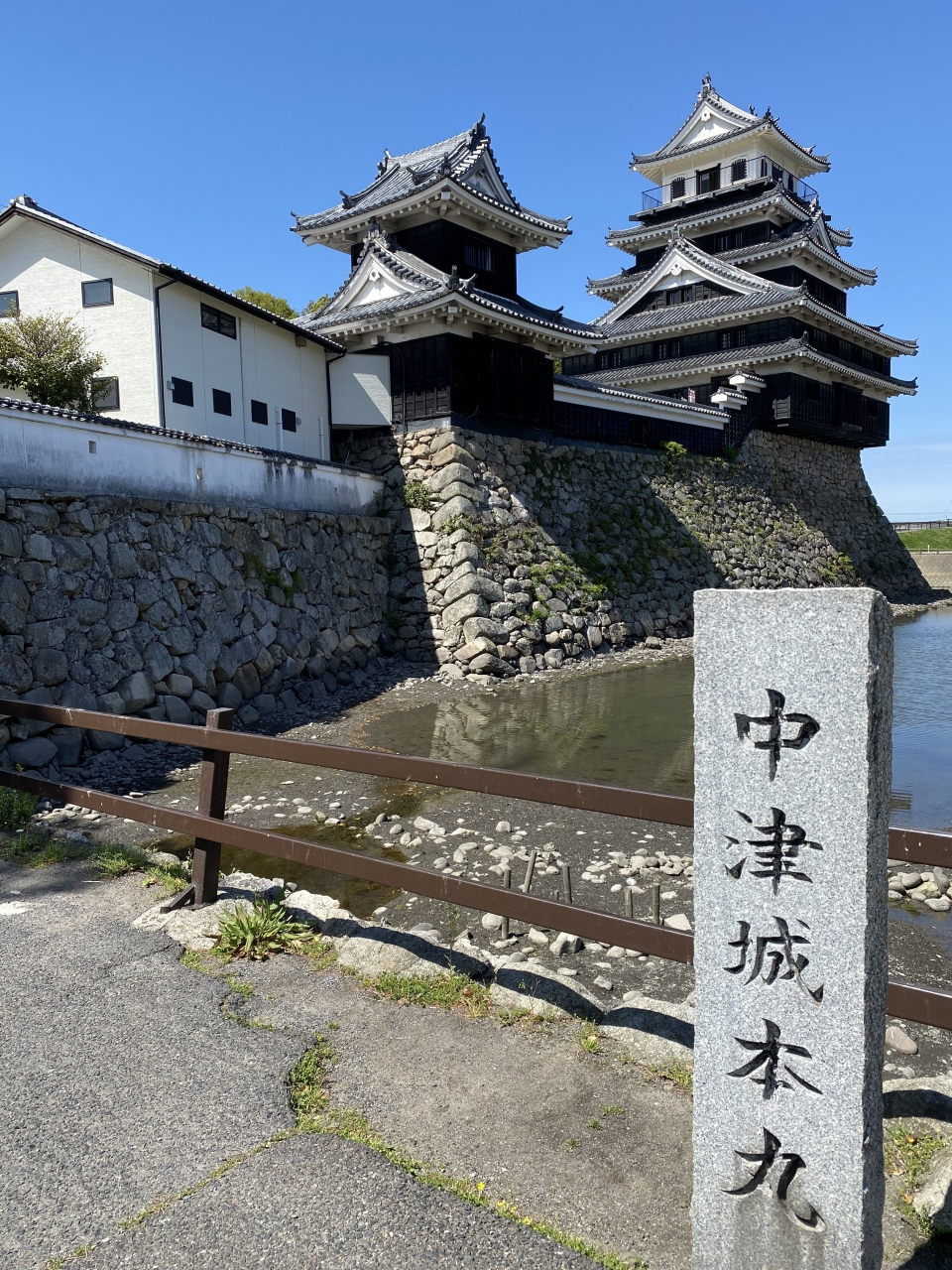 入口方向に歩いていくと石碑があり、ここから眺めると石垣から城のはみ出し感がハンパないです。入口で入場料200円を払って入場。中身はほぼ奥平家歴史資料館となっており、元々は中津城には天守閣は存在しなかったという説もあるようです。