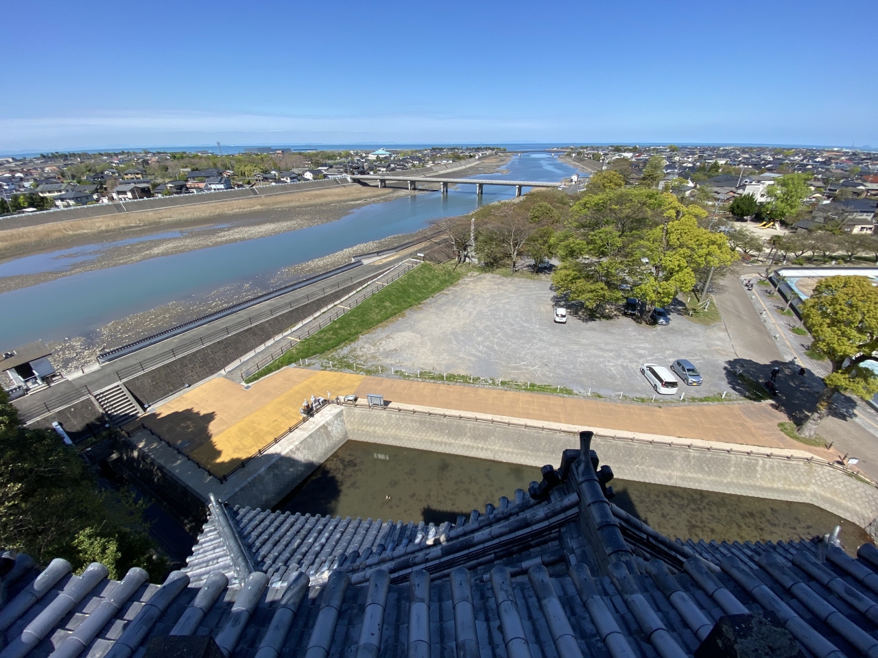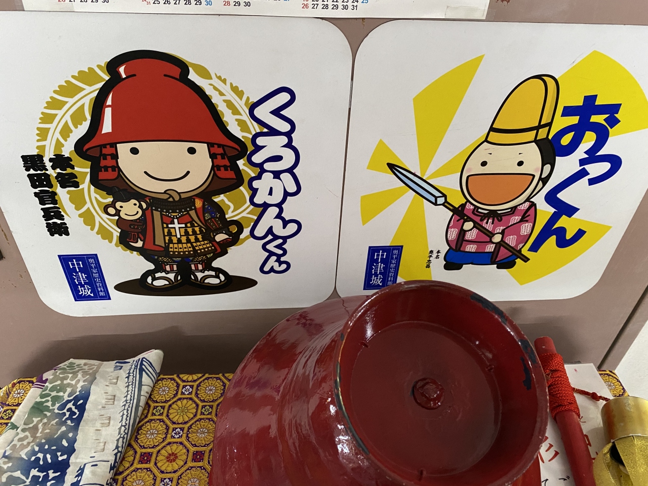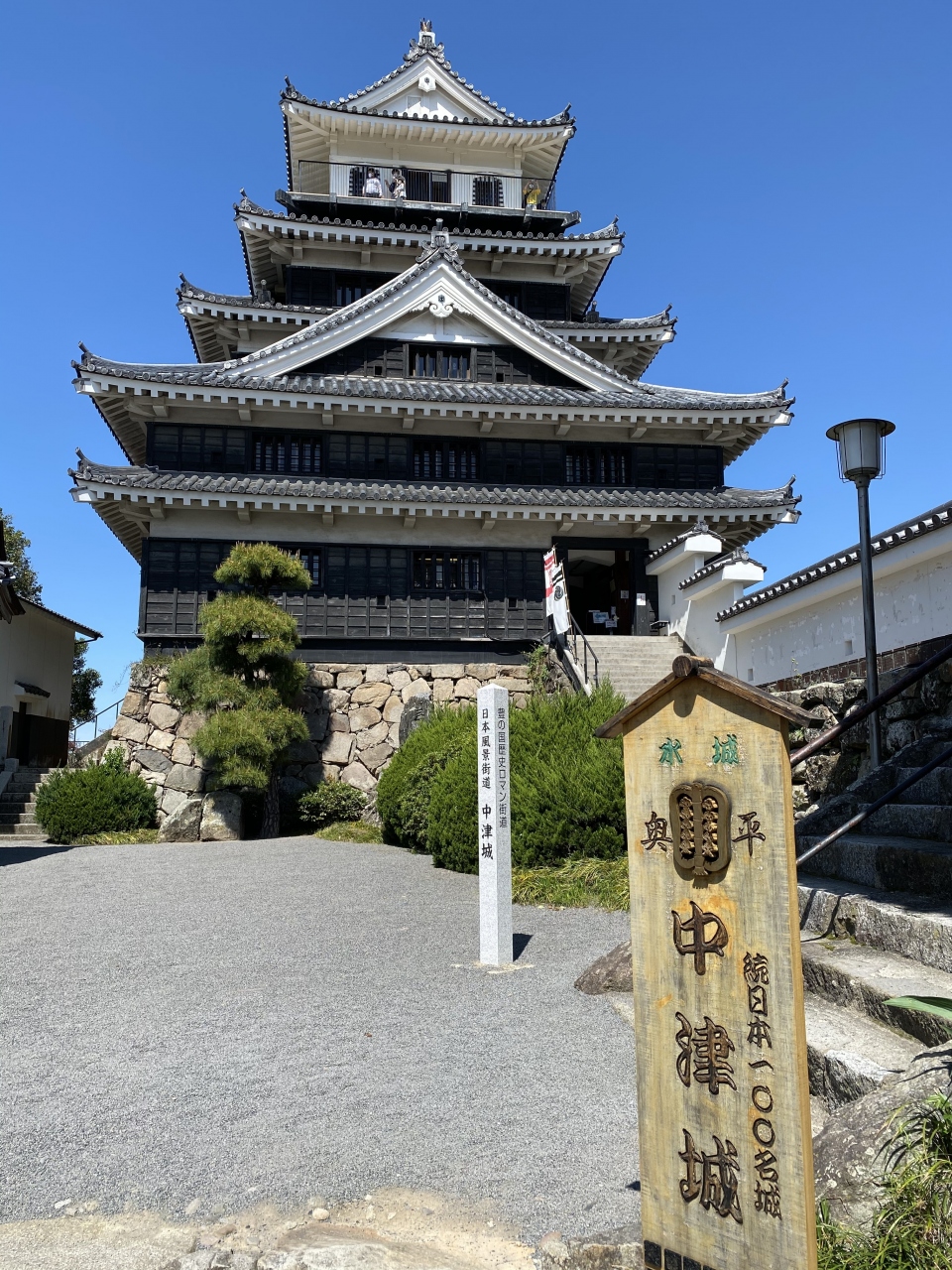 築城した黒田官兵衛の兜をかぶって記念写真が撮れるコーナーがありました。奥平家とゆかりの深い徳川家康公の鎧なども展示されています。上からは、中津川を含めた眺めが良いです。お城の横には奥平神社があります。奥平神社からまっすぐ下に降りると、大きな駐車場がありましたので、コチラが正面だったようです。