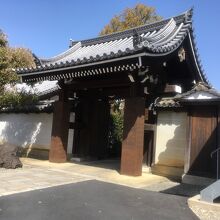 阿弥陀堂の前を通って進むとあります。知恩院の国宝である御影堂と重要文化財の集会堂との境にある屋根のついた門のことで、門には木札が掛けられていました。切妻造りの四脚門で、周囲のお堂が大きいので、とてもこじんまりとして見えます。四脚門を通り抜けると、武家門があります。