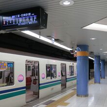 同じ市営地下鉄の山手・西神線と比べると車両のサイズが小さく、混んでいると圧迫感を感じそうです。(反対派というわけではありませんが)こちらも女性専用車両が終日設定。4両編成と短いですがラッシュ時間帯などはしっかり乗り切れているのでしょうか・・・?