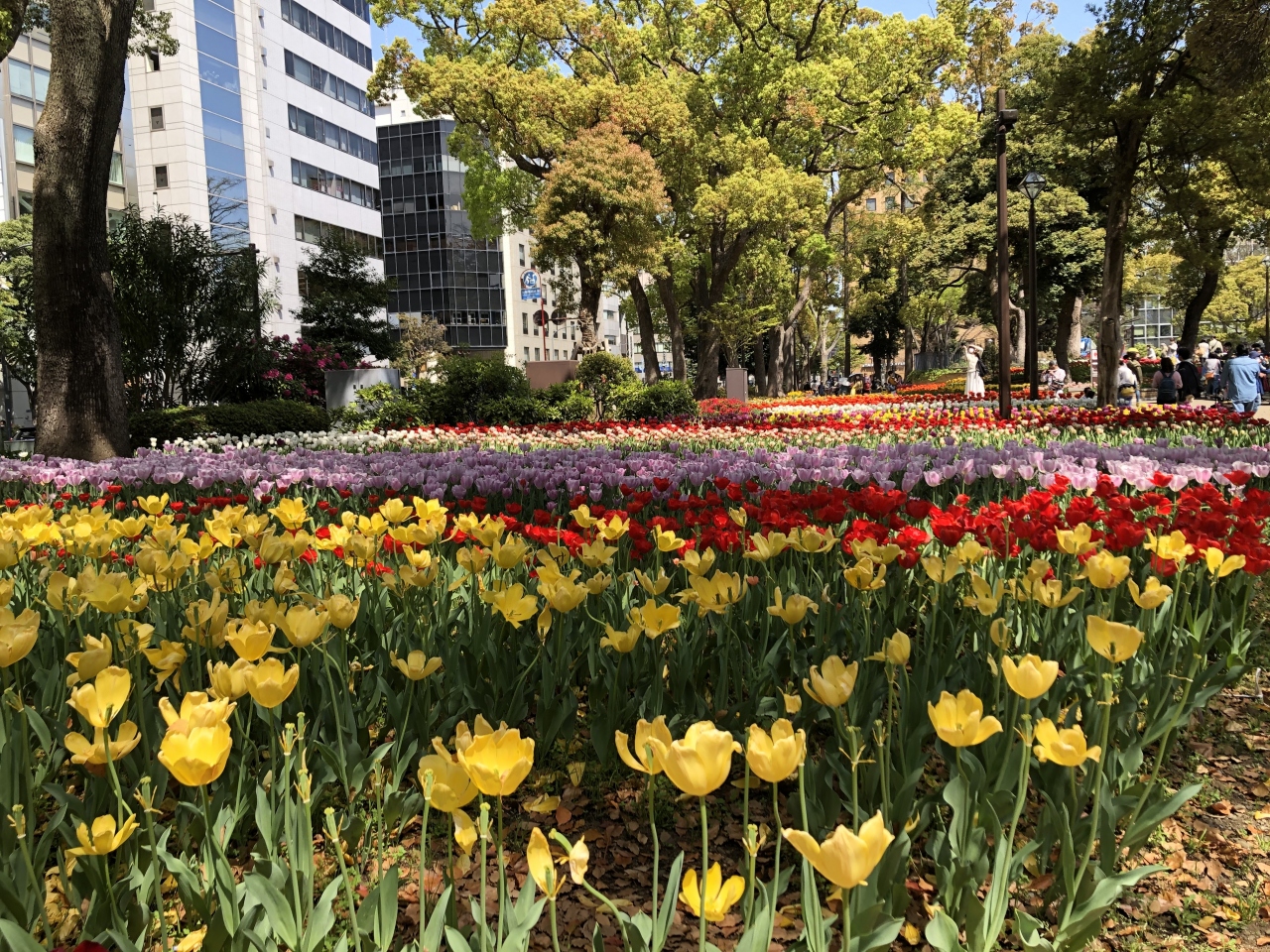 横浜公園で、毎年4月上旬から中旬にかけてチューリップまつりが開催され、横浜公園全体が12万本のチューリップで埋め尽くされます。