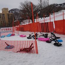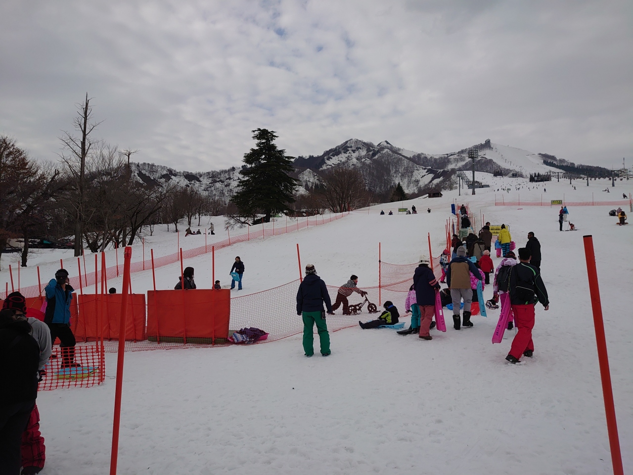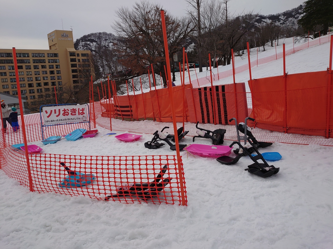 スキーに飽きたら、ソリで遊ばせたりと工夫しながら一日楽しめました。