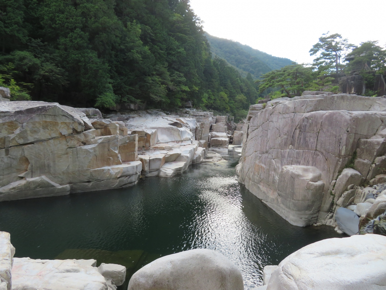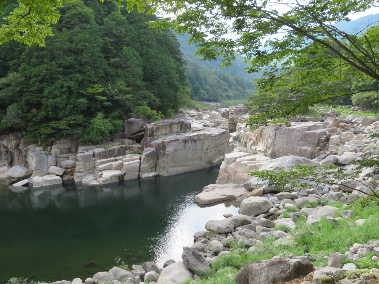 木曽川が花崗岩を削ってできた、大きなサイコロ状の岩が転がる渓谷美の美しい場所です。
