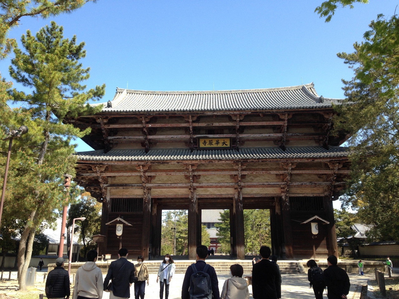 奈良時代、運慶、快慶によって作られた金剛力士像に守られている、高さ25メートルもある山門です。門は彩色されていますが、二体の金剛力士像は昔のままのようで、余計な手を加えず朽ちた所が迫力を増していると思いました。