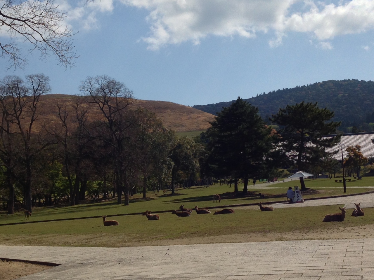 東大寺の裏手にあり、1月に山焼きが行われることで有名な若草山です。山全体が芝生で覆われていて至る所に鹿を見ることができます。地元の人たちには身近な場所で、近隣の小学生は一度は此処に遠足に来ると言うことです。