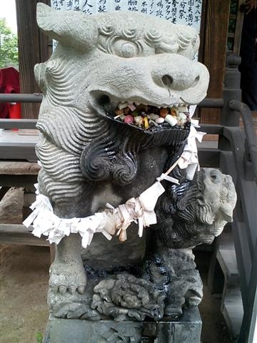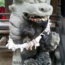 口に水飴を含ませると痛みをとってくれると伝えられている歯痛狛犬には、現在でも口の中に飴が詰められていて面白いです。