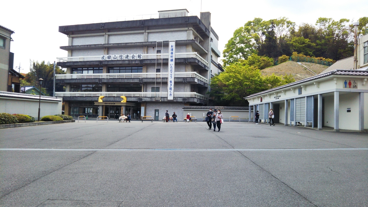 成田山新勝寺の総門前からすぐの場所にそびえる建物で、中には無料の休憩所やトイレなどがあり、参拝者の立ち寄り所として機能している。また、説法などのセミナーもやっている建物で、成田山新勝寺を支える施設の一つである。近くにはバス停もある。