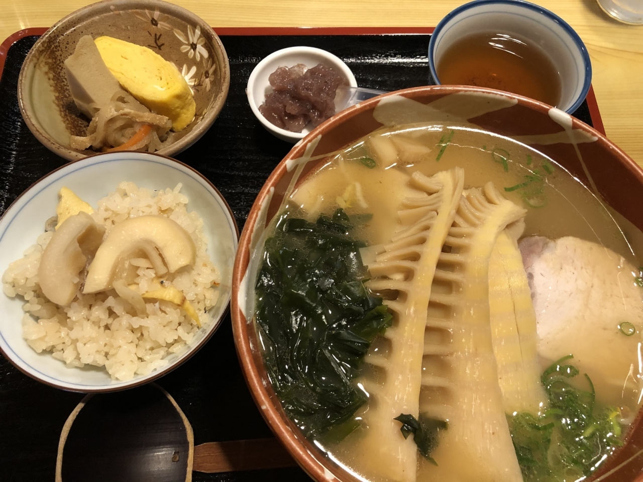 阪急長岡天神駅から徒歩1分程度。松屋の2階にあります。昔からある飲食店で、一歩入ると急に昭和な感じがします。たけのこの季節にはたけのこを使った料理が食べられます。たけのこご飯や、たけのこラーメンなどがあります。