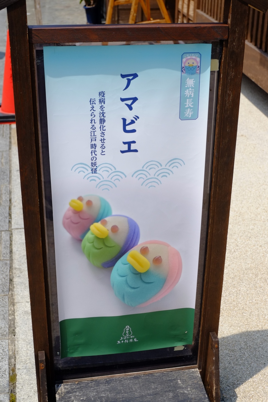 コロナウィルス流行に関連して、アマビエのお菓子を販売してました。