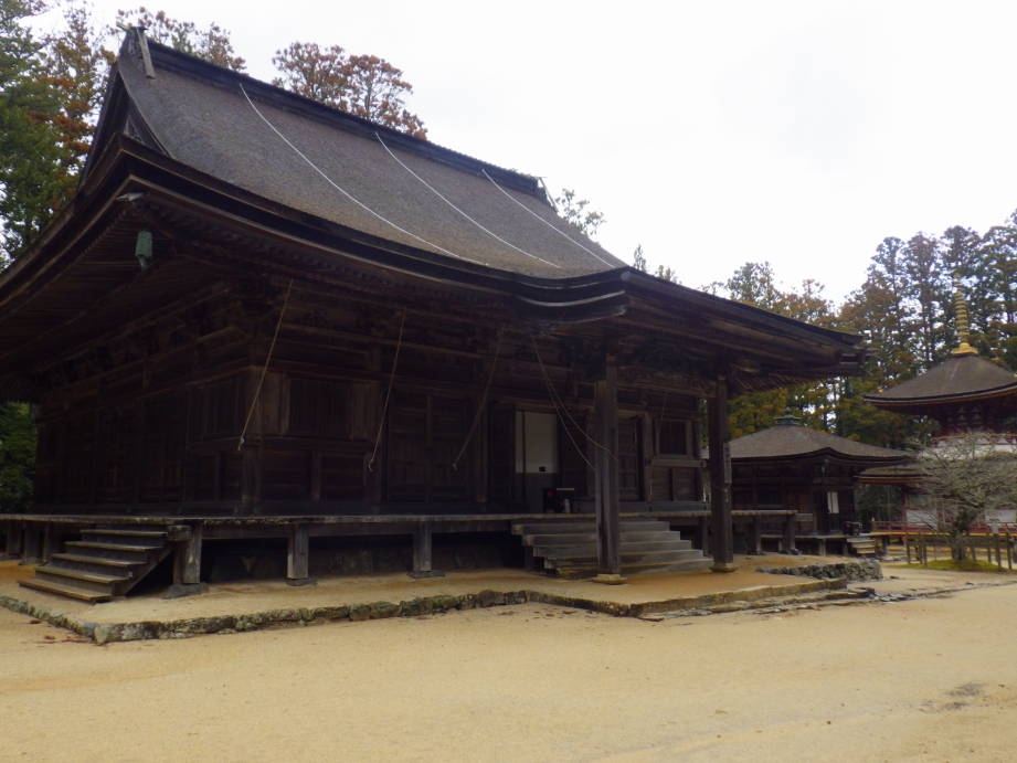 「不動堂」の近くに「大会堂」がありました。五間四面のお堂で、五辻斎院(ごつじさいいん)内親王というお方が、父帝の追福のため建立した建物だということでした。今は、法会執行の際の集会所的役割で使われているそうです。