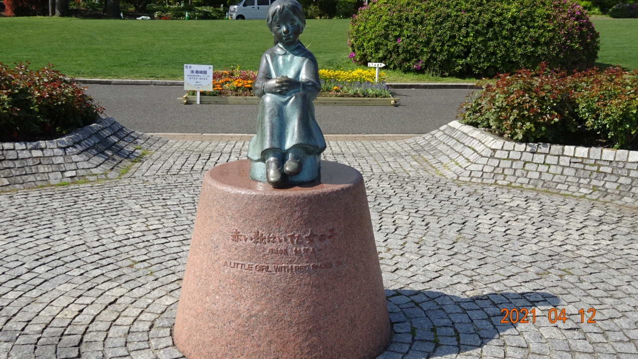大正時代に作られた童謡『赤い靴』の歌詞をもとに昭和54年に作られた像です。