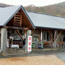 八幡平アスピーテラインの岩手側の入口近くで、ちょうどアスピーテラインに入るために右折レーンする交差点にあり、わかりやすい立地です。駐車場も広く、隣のビジターセンターとも中でつながっていました。このあたりで何か購入するのに便利です、