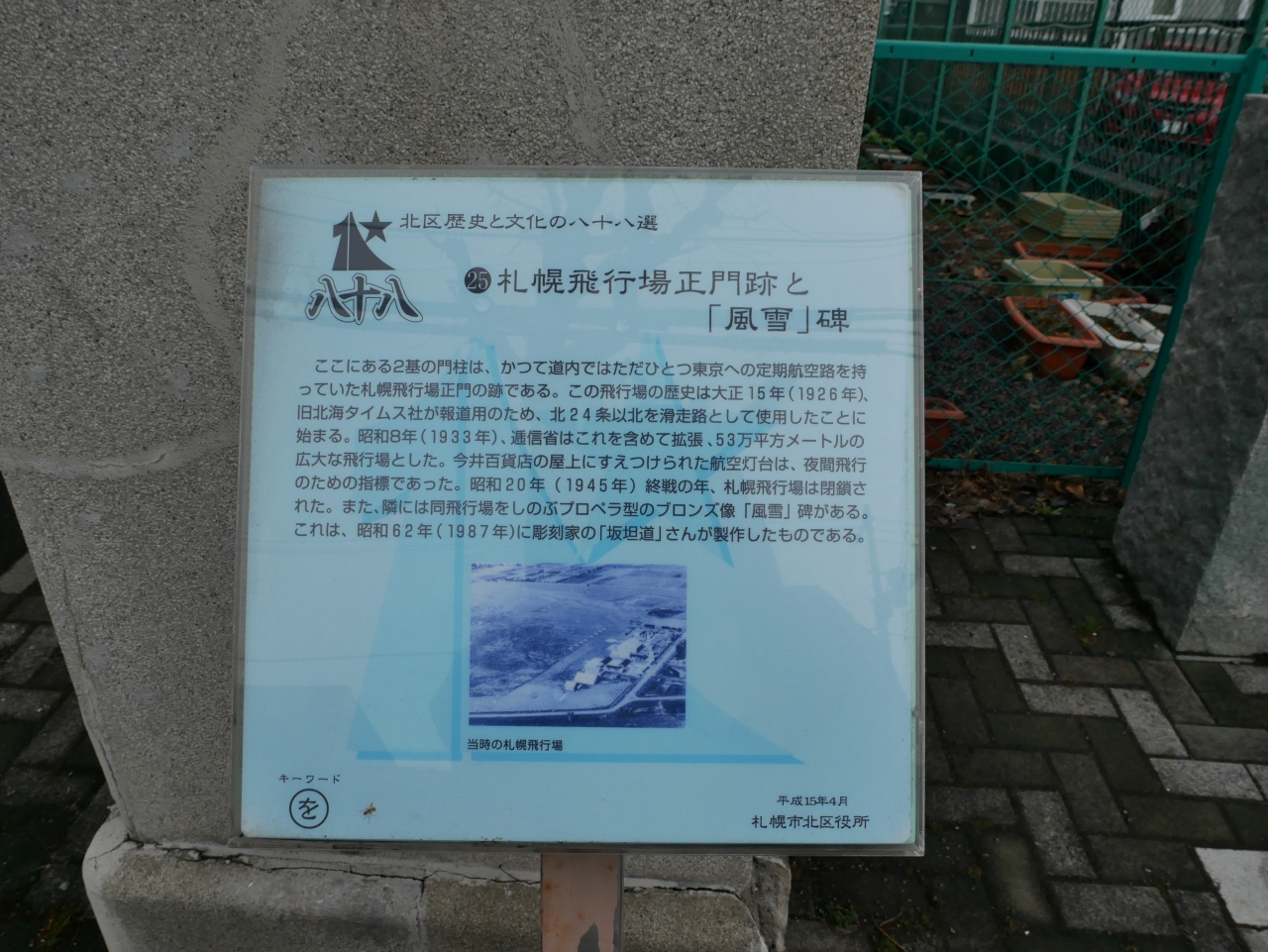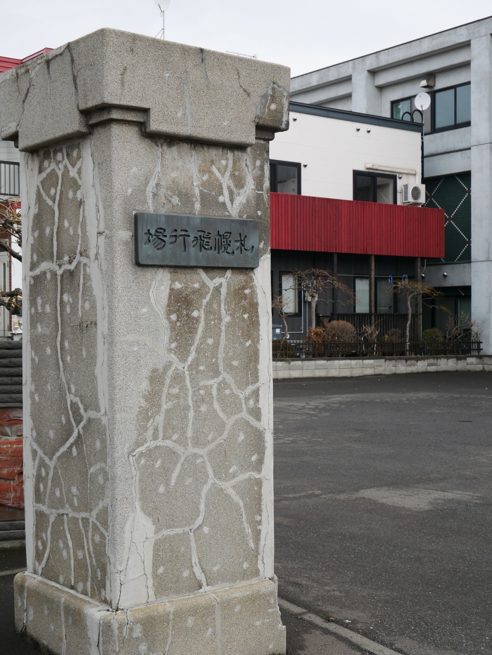 今は、入口の碑みたいなのしか残っていませんが、ちょっと離れた場所に、滑走路の防風林跡が緑地帯公園のようになっていました。