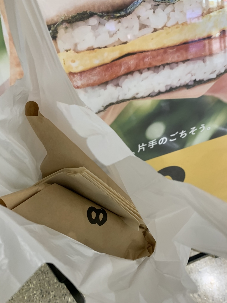 ちょうどフライトが昼時なので、那覇→羽田に着いてからベンチで「ぽーたま」ランチをしました(笑)