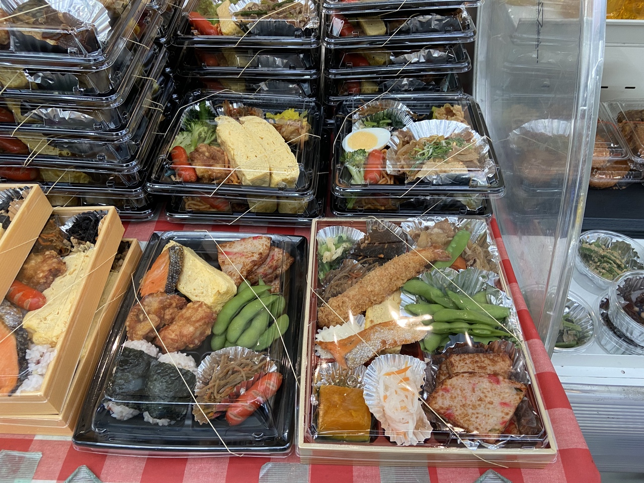 こちらの店頭では美味しそうなお惣菜やお弁当が並んでいます。小さいポーションから購入出来るのが助かります。白いご飯が入っていないおかずのみのお弁当が良いです。色んな種類のおかずが少しづつ入っており、とても楽しくいただけます。