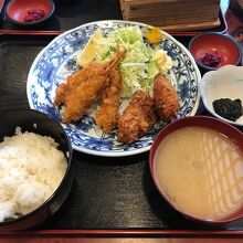 富津公園の無料駐車場の近くにあります。車で行けるので便利です。13時を過ぎていましたが、日曜日であったせいか、ずっと満席状態でした。あさり飯も有名のようでしたが、私は貝フライ定食を食べました。中身が楽しみでしたが、ぷりっとしたカキフライ2個と、あさり串が3本でした。あさり汁のあさりも身が大きく、どれも美味しかったです。