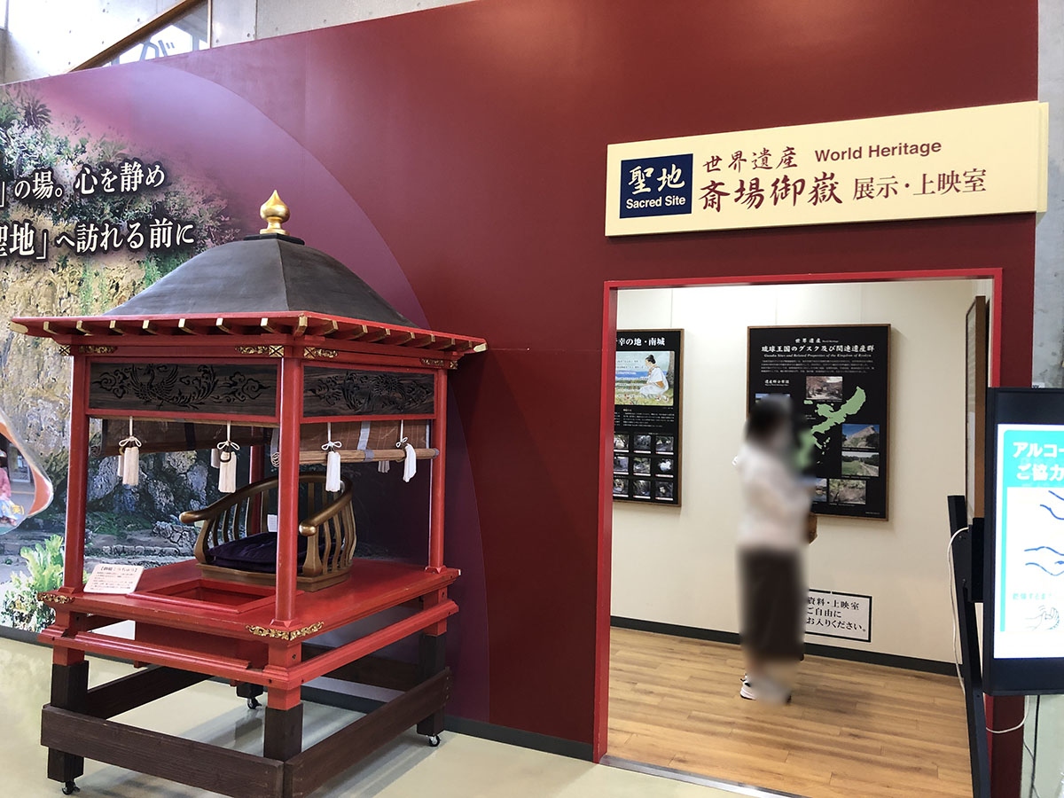 斎場御嶽のチケットを販売しています。管内で斎場御嶽の紹介ビデオの上映や出土品などの展示もありますので,斎場御嶽の予習になりました。お土産などを扱う物産館,カフェ,レストランなどがあり,斎場御嶽だけでなく知念岬の観光スポットへの拠点でもあります。