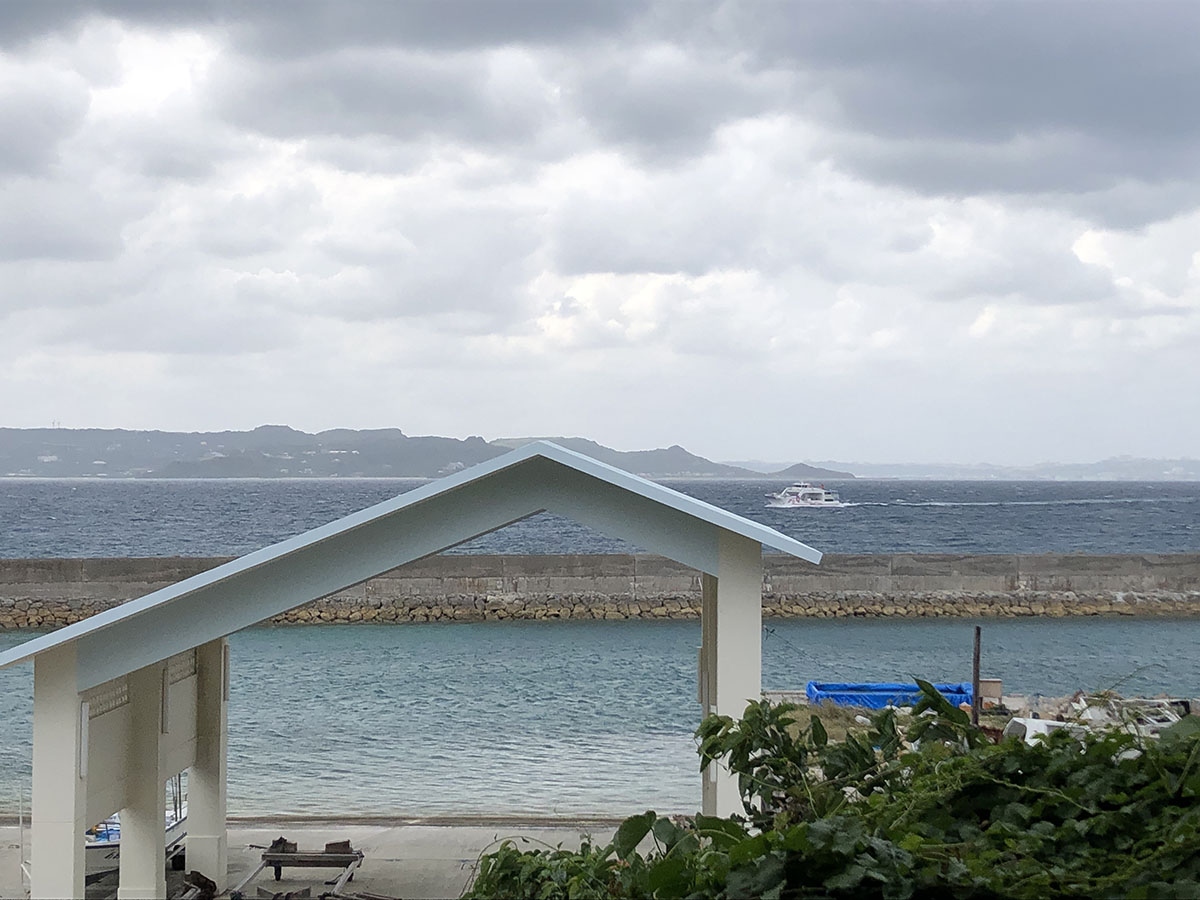神の島・久高島へわたる久高島フェリーの久高島側のターミナルです。港から少し坂を上がった所にあります。レンタサイクルもここで借りられます。レンタサイクルはここだけでなく付近に他に数店あります。近くに食堂やカフェなどもあります。いったん港エリアを出て観光スポットへ向かうと,食事やお買い物できる所がなくなるので,港付近で用を済ませておくのが良いと思います。