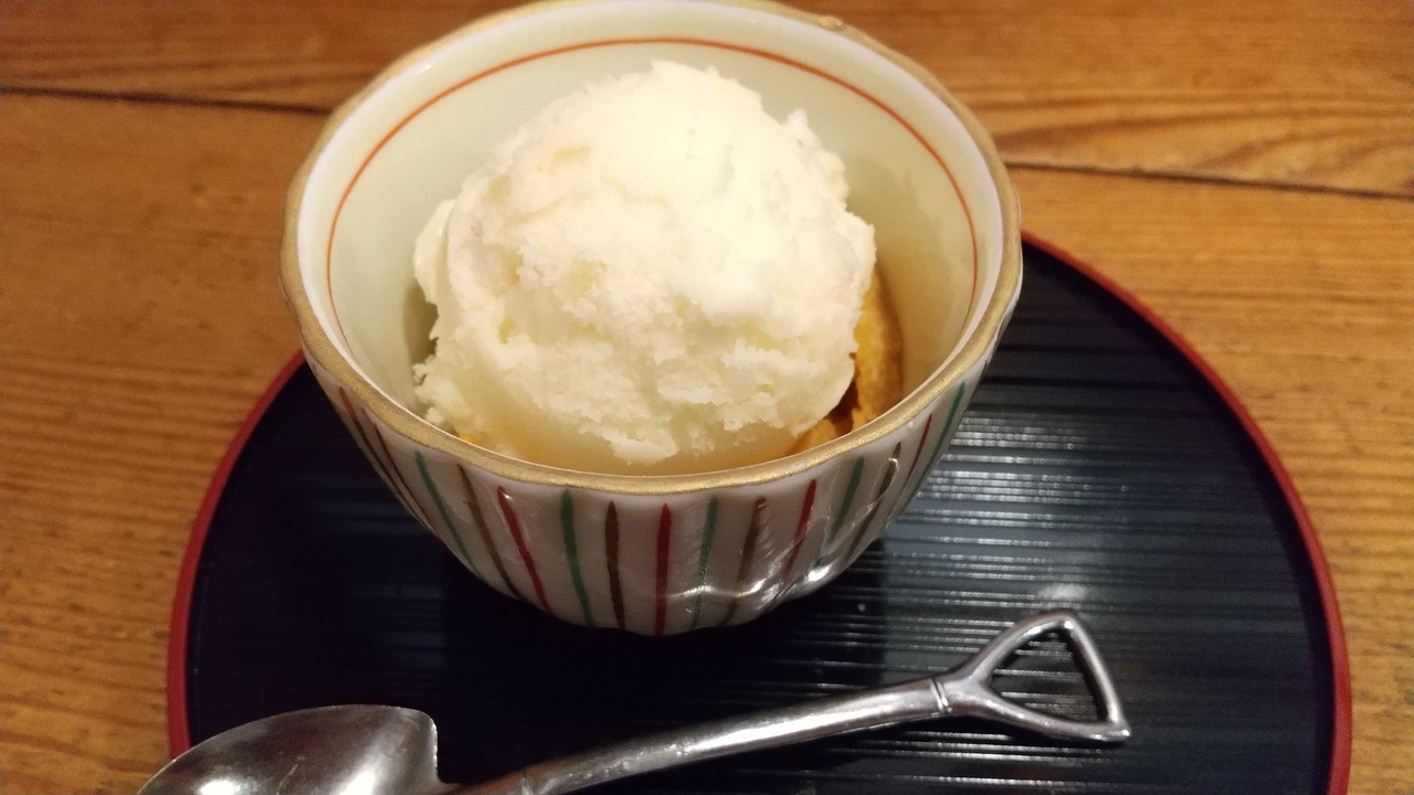 アサリが美味しい季節、生ワカメの歯ごたえもよく絶品です。おうどんはつるつるで喉越しよく何度食べても感激する美味しい麺です。食後のデザートにアイスクリームも必ず食べますが、今回の季節のアイスクリームは桃とヨーグルト。サッパリとして美味しかった。帰りにはクッキーを買うのも楽しみになっています。